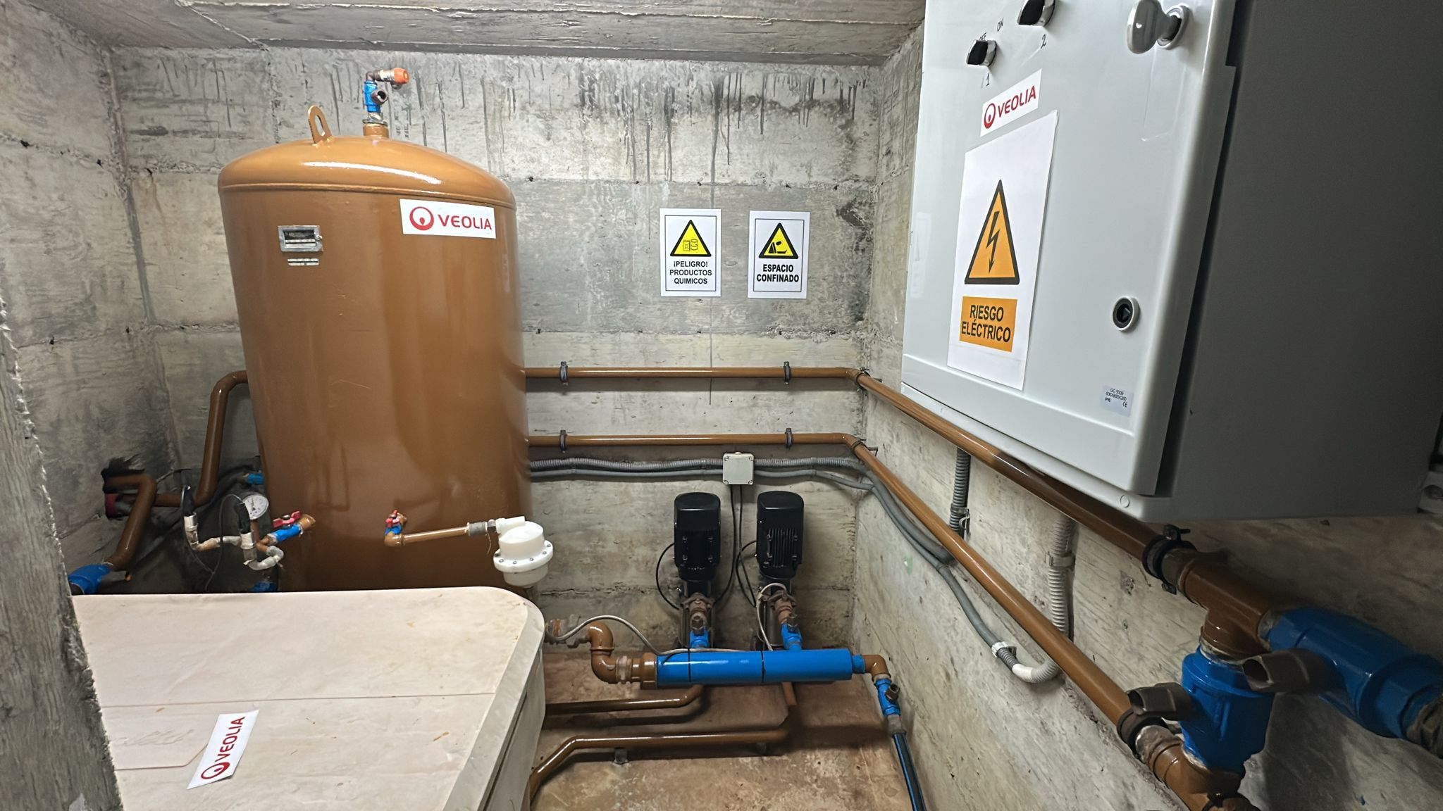 La actuación ha consistido en la sustitución de los equipos de bombeo por dos nuevas bombas verticales de 2,20 kW, diseñadas para ofrecer un caudal más estable y adaptado a la demanda real de la zona. Además, se ha renovado por completo el cuadro eléctrico y los sistemas de control y protección de la instalación, lo que permite un arranque más suave de las bombas, un mejor registro de funcionamiento y una gestión más segura de las sobrecargas o fallos eléctricos.
