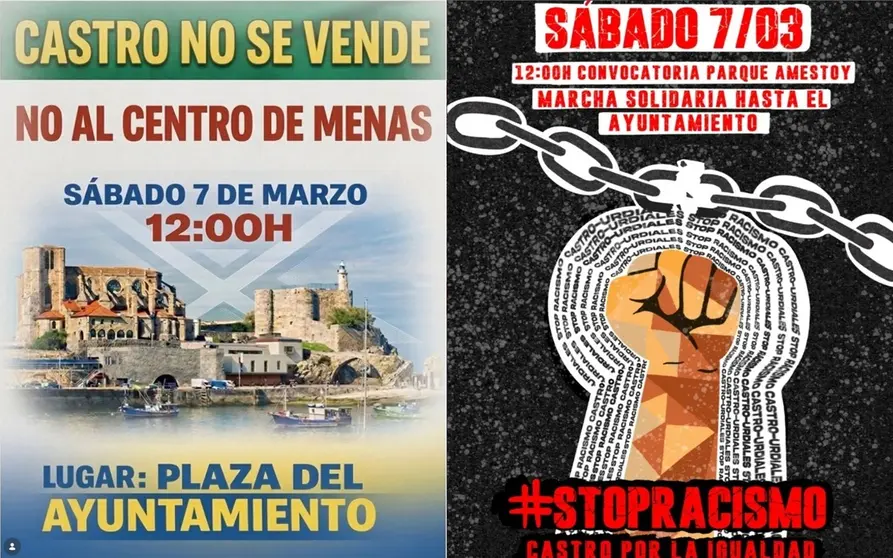 En paralelo, Vox ha reunido a un centenar de personas frente a la Casa Consistorial con mensajes críticos como ‘Ellos no lo viven, tú sí. No al centro de menas’, ‘Recursos para Castro. No para centros impuestos. Unidos contra el centro. Olvidados del Ayuntamiento’, ‘No es racismo’ y ‘Castro no se vende. No al centro de menas. No es racismo, son estadísticas’. Sus cánticos incluían «ayudas sociales para los nacionales», «no los queremos», «prensa española manipuladora» y, en menor volumen, «arriba España» .