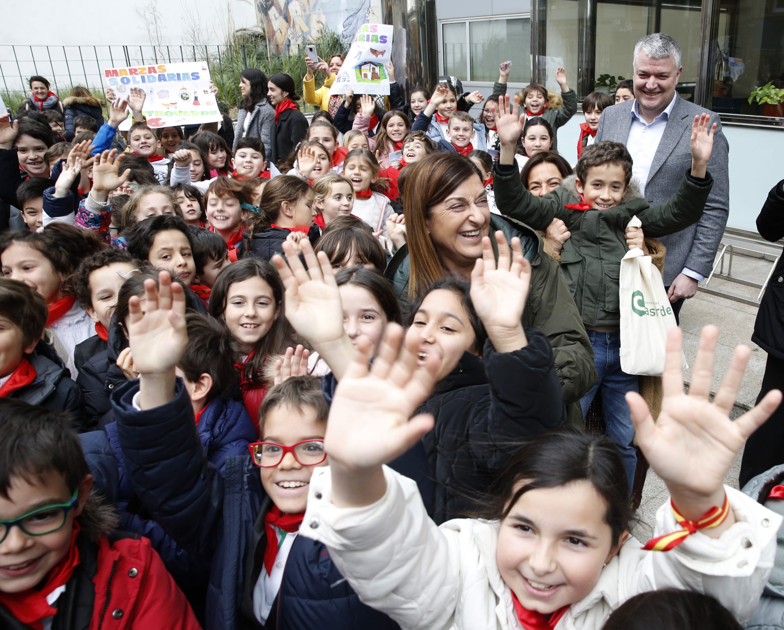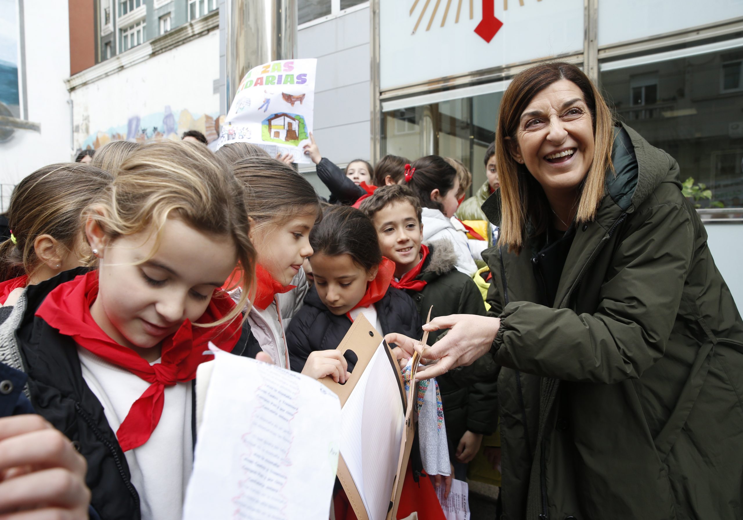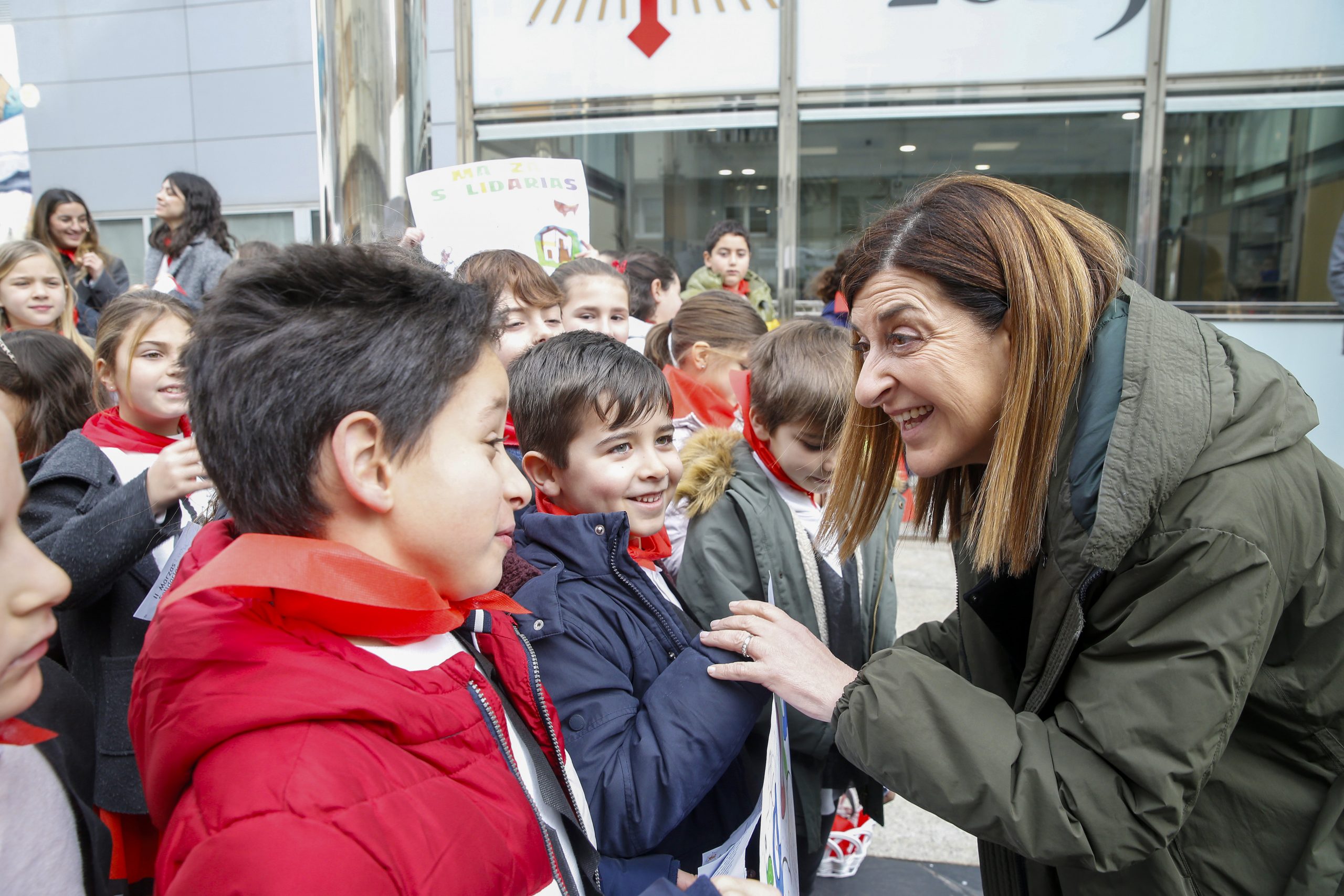 La presidenta de Cantabria, María José Sáenz de Buruaga, ha recibido hoy en la sede del Ejecutivo regional a un grupo de 140 alumnos del colegio Castroverde de Santander, de tercero y cuarto de Primaria, que participan en el proyecto educativo ‘Marzas solidarias’. Este proyecto tiene como objetivo recaudar fondos y alimentos para la Cocina Económica mediante el canto de estas canciones populares por las calles de la capital cántabra.