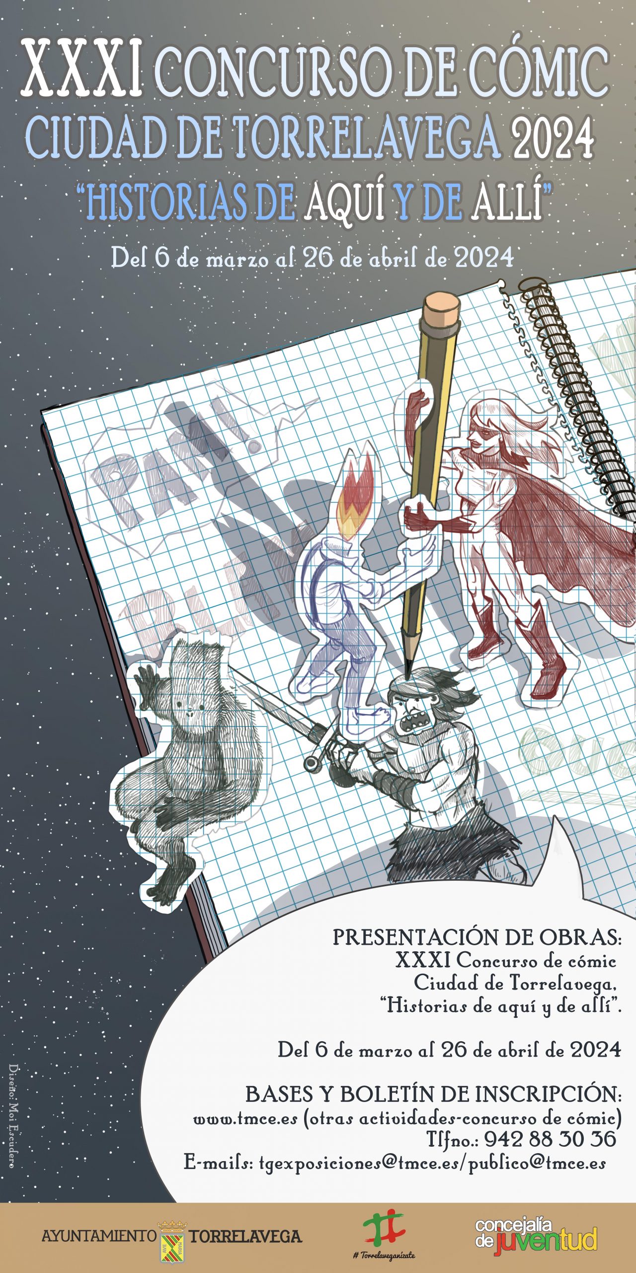 El concejal de Juventud, Nacho González, ha anunciado la apertura del plazo de presentación de trabajos para el XXXI Concurso de Cómic ‘Ciudad de Torrelavega. Historias de Aquí y de Allí’. Este concurso está dirigido a dibujantes no profesionales, tanto individuales como colectivos, con edades comprendidas entre los 12 y 30 años, y ofrece un total de 2.500 euros en premios. El período de presentación de obras estará abierto hasta el 26 de abril a las 14 horas.