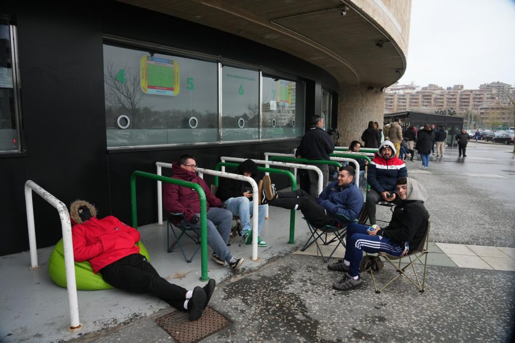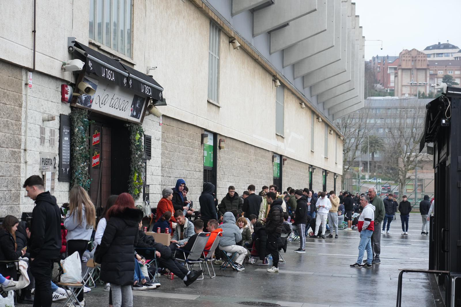 Largas colas en las taquillas de Los Campos de Sport para adquirir las 1.075 localidades para que los aficionados verdiblancos puedan presenciar en El Molinón- Enrique Castro ‘Quini’ (sábado 30- 18:30 horas) el partido de la trigésima tercera jornada de LaLiga Hypermotion que el Racing disputará ante el equipo asturiano. El club destina 537 entradas para su venta en El Sardinero -solo para abonados de la temporada 2023/24, pudiendo adquirir cada uno dos como máximo- y facilita las otras 538 a la Asociación de Peñas Racinguistas, que las distribuirá entre sus agrupados. Los primeros racinguistas se daban cita a las tres de la madrugada provistos de mantas, sillas, mesas y hasta pufs para hacer tiempo hasta las 10:00 horas, momento en el que se abrieron las oficinas del conjunto verdiblanco. A las seis de la mañana ya habían «acampado» más de 200 personas. Esta previsto que hoy mismo se agoten los boletos enviados por el club asturiano.
