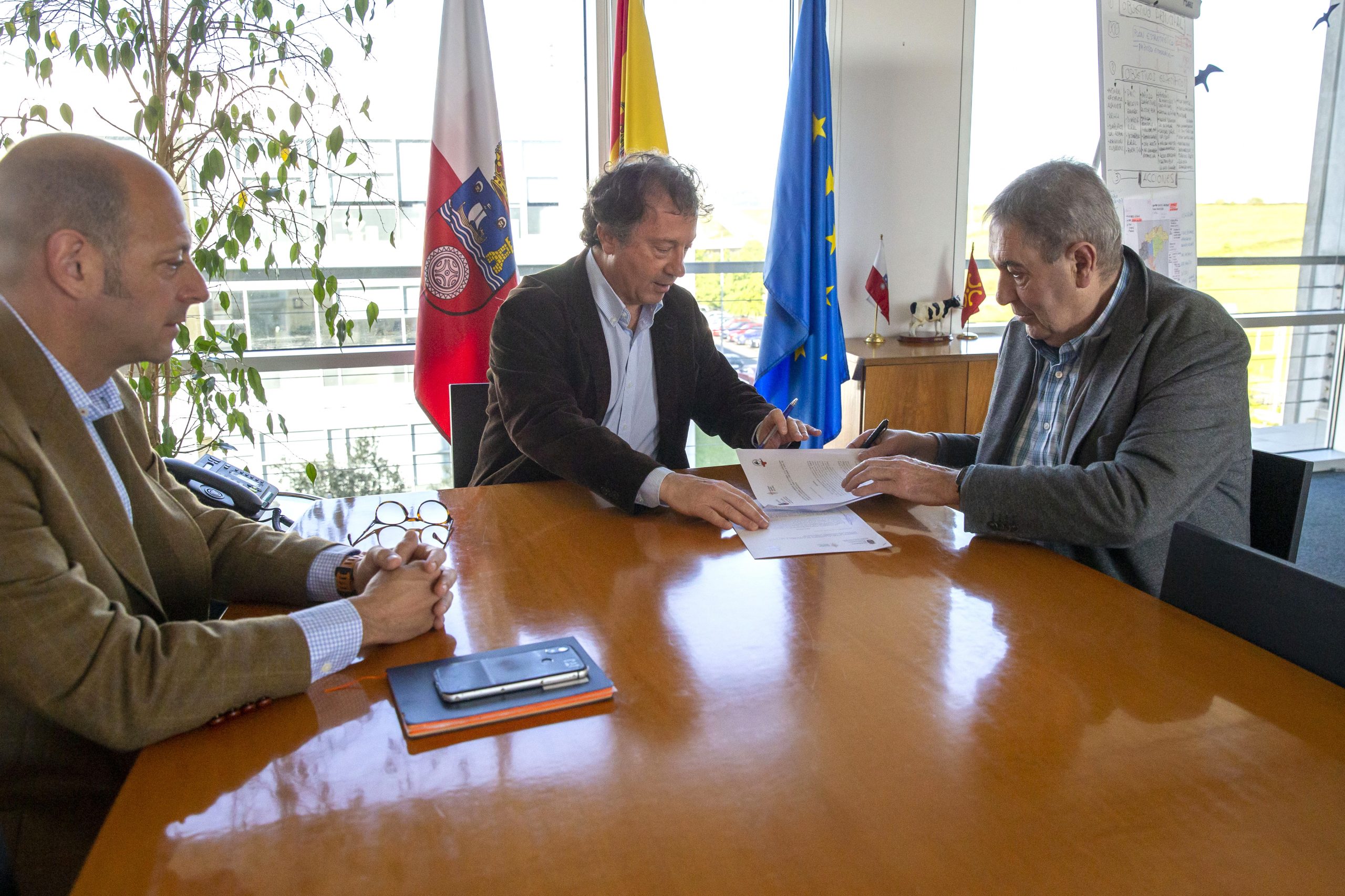 El consejero de Desarrollo Rural, Ganadería, Pesca y Alimentación, Pablo Palencia, ha firmado hoy un convenio de colaboración con el presidente de la Asociación Frisona de Cantabria (AFCA), Germán de la Vega, por el que el Gobierno autonómico concede un total de 505.000 euros para que esta entidad continúe impulsando la mejora genética de esta raza bovina.