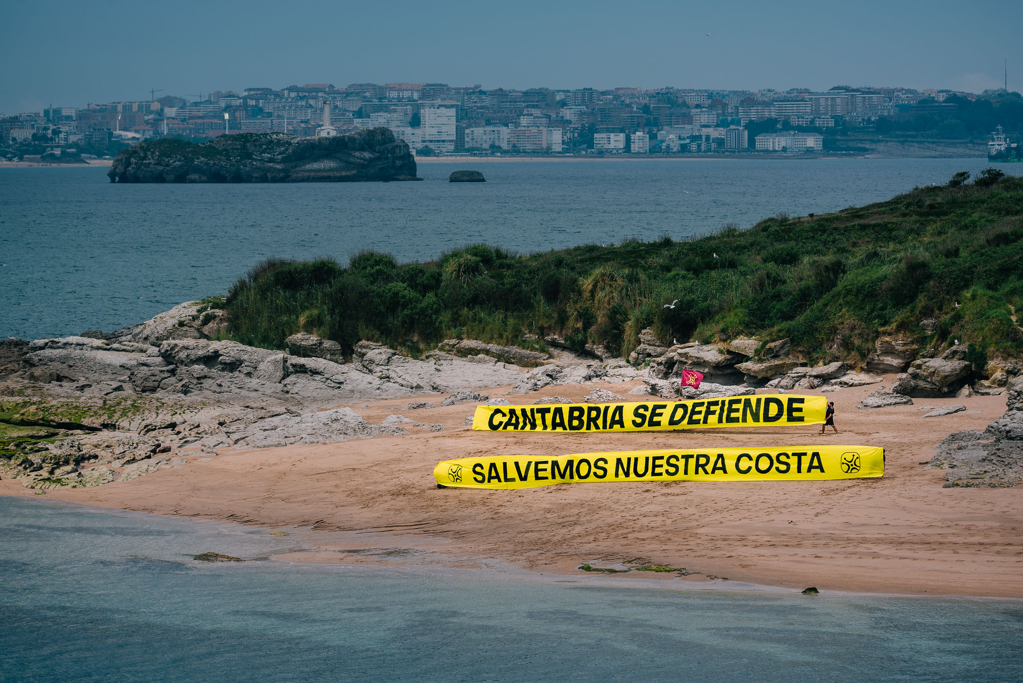 Cantabristas ha desplegado una pancarta gigante en la isla de Santa Marina (frente a Loredo) para protestar contra la masificación turística y la especulación urbanística. En ella, se podía leer “Cantabria se defiende, salvemos nuestra costa”; el lema con el que la formación cantabrista ha convocado la manifestación que este sábado 18 de mayo recorrerá Loredo para visibilizar el rechazo social hacia el macrocomplejo turístico que una promotora inmobiliaria quiere construir en una extensa área natural ente Loredo y Langre.