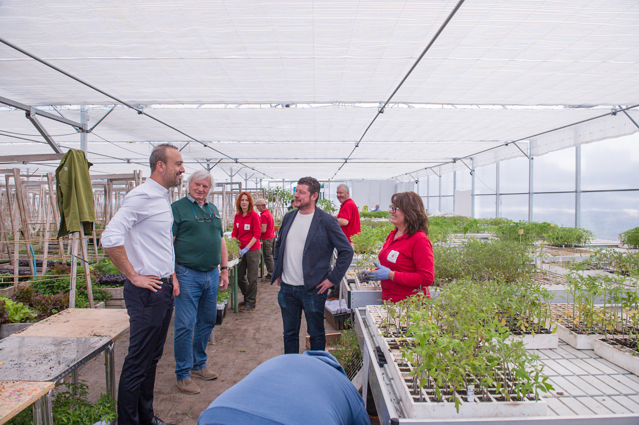 El alcalde, Javier López Estrada, y el concejal de Dinamización, Jesús Sánchez, acompañados por Guy Ferrier, han visitado estas nuevas instalaciones que permite a la Asociación trabajar para recuperar las diferentes variedades del tomate tradicional.