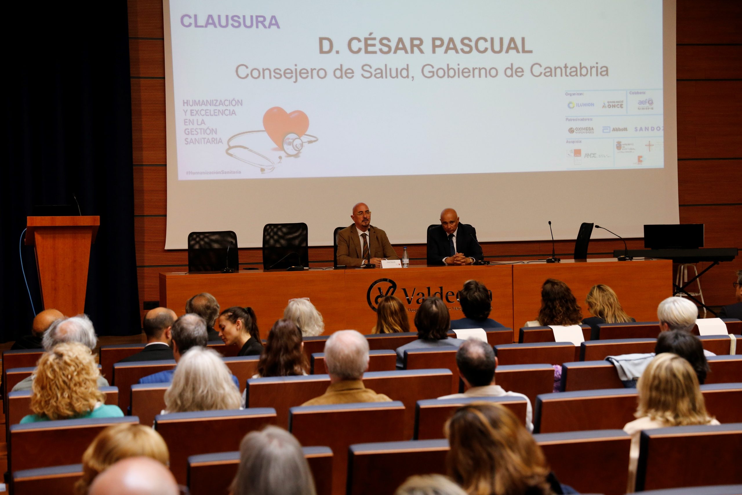 César Pascual ha estado acompañado en la clausura por la directora gerente de Valdecilla, Dolores Acón, y por el director de Relaciones Institucionales en el ámbito sanitario de ILUNION, Eusebio Azorín, entre otros.