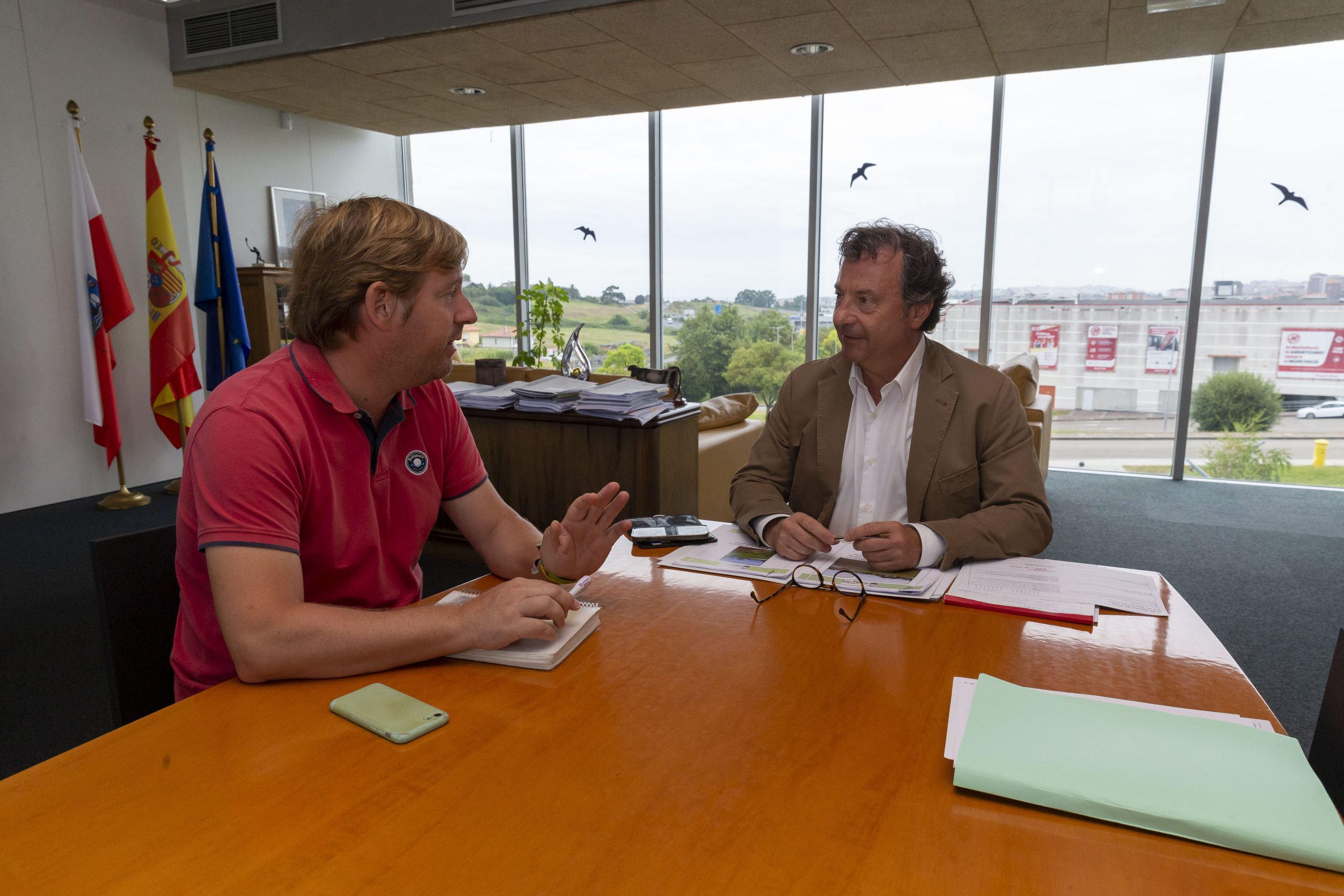 El consejero de Desarrollo Rural, Ganadería, Pesca y Alimentación, Pablo Palencia, se ha reunido con el alcalde de Reocín, Pablo Diestro, para estudiar el proyecto de instalación de una báscula de pesaje para los ganaderos, en Puente San Miguel.