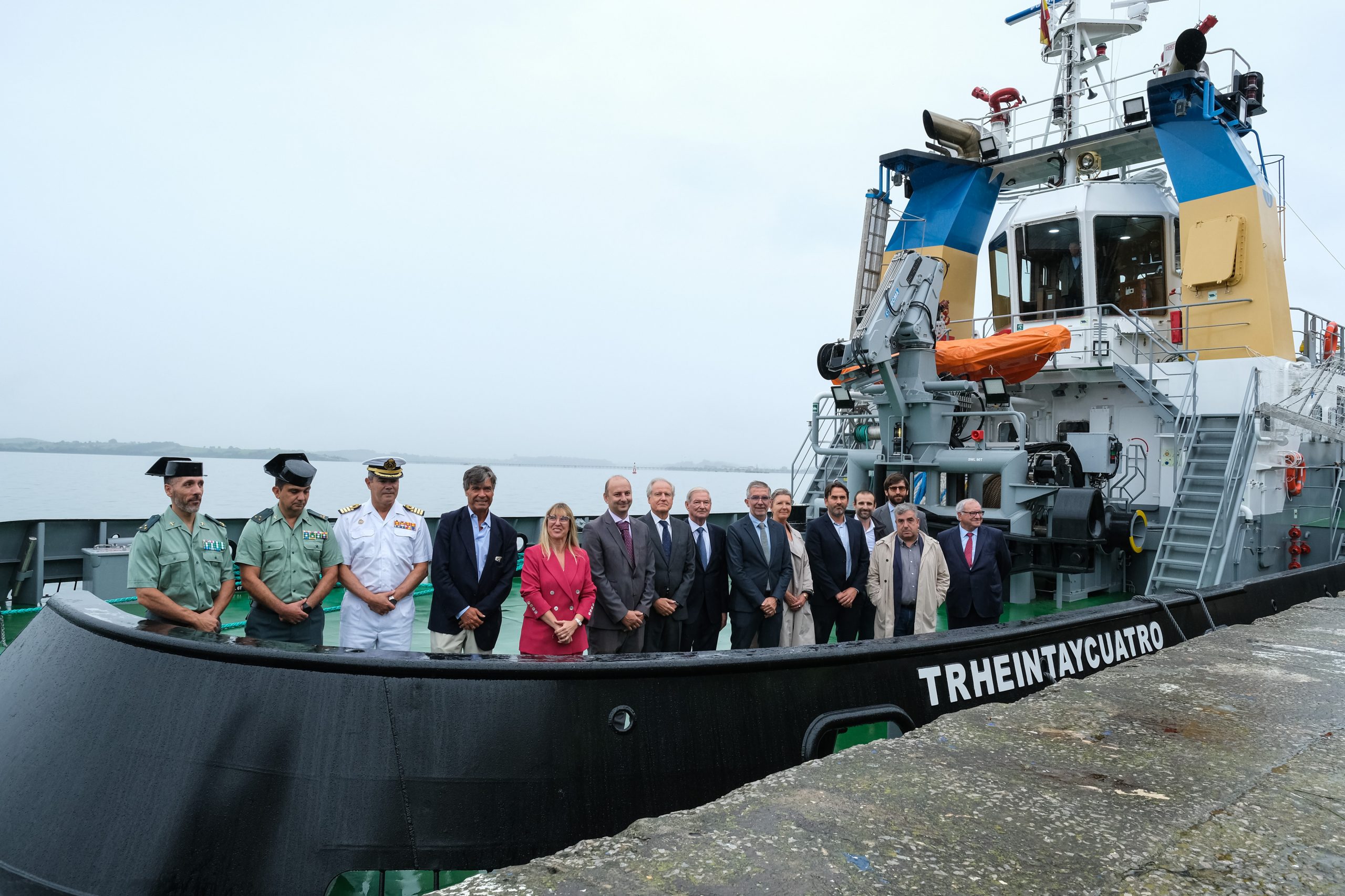 El consejero de Industria, Empleo, Innovación y Comercio, Eduardo Arasti, ha asistido hoy a la presentación del nuevo remolcador ‘Trheintaycuatro’, propiedad de la compañía cántabra Remolques Unidos, con el que contará el Puerto de Santander para ayudar a la maniobra de otras embarcaciones, tanto en las instalaciones portuarias de la capital cántabra como en mar abierto.