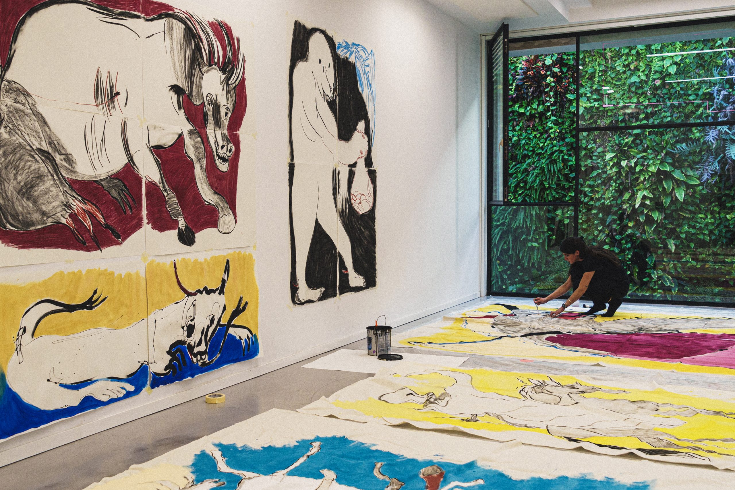 La artista ha creado un imaginario pictórico personal que aúna Liébana, Japón, pasado y presente, con la exteriorización de su propio interior. Por primera vez el color es pleno protagonista de sus piezas y, también por primera vez, expone pintura en gran formato, combinado con cerámica. Esta última, una técnica en la que se palpa que, tras meses de práctica y ensayo-error, ha superado sus temores internos y se desenvuelve con total libertad. La artista cántabra, con ‘Kaijus y otros monstruos’, nos muestra cómo nuestros monstruos internos, nuestros miedos, salen a la luz en una catarsis, un apocalipsis que da lugar a una nueva perspectiva.