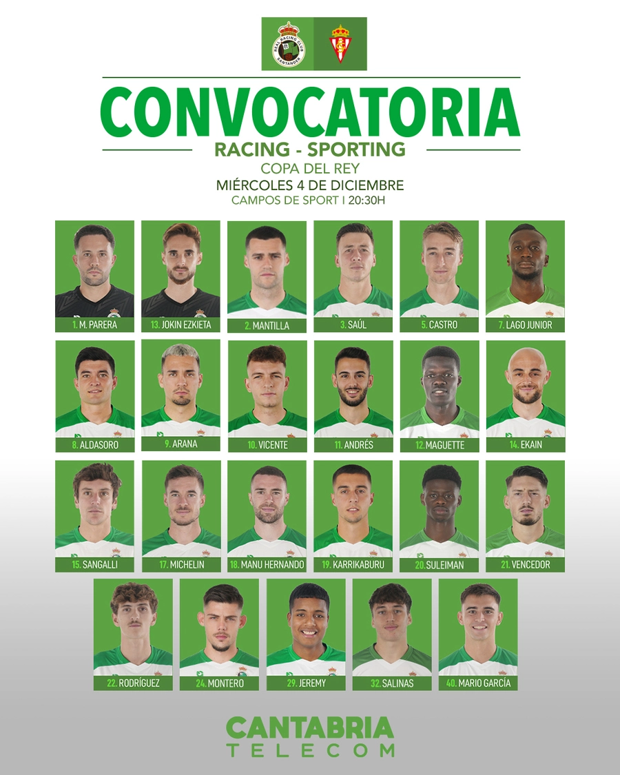 El conjunto cántabro llega a esta segunda ronda tras superar a la Unión Deportiva Lanzarote en Tías, un choque muy competido en tierras canarias en el que anotaron para los racinguistas Karrikaburu, Ekain, Jeremy y Suleiman (3-4). La escuadra dirigida por José Alberto, que en la mañana de hoy realizó su segundo entrenamiento de la semana en las Instalaciones Nando Yosu, llega a la cita de Copa con las bajas por lesión de Íñigo y Pol Moreno. Con el que sí contará el cuerpo técnico es con Jorge Salinas, el defensor del filial finalmente se ha colado en la lista definitiva de 23 futbolistas y estará mañana entre los disponibles en los Campos de Sport.