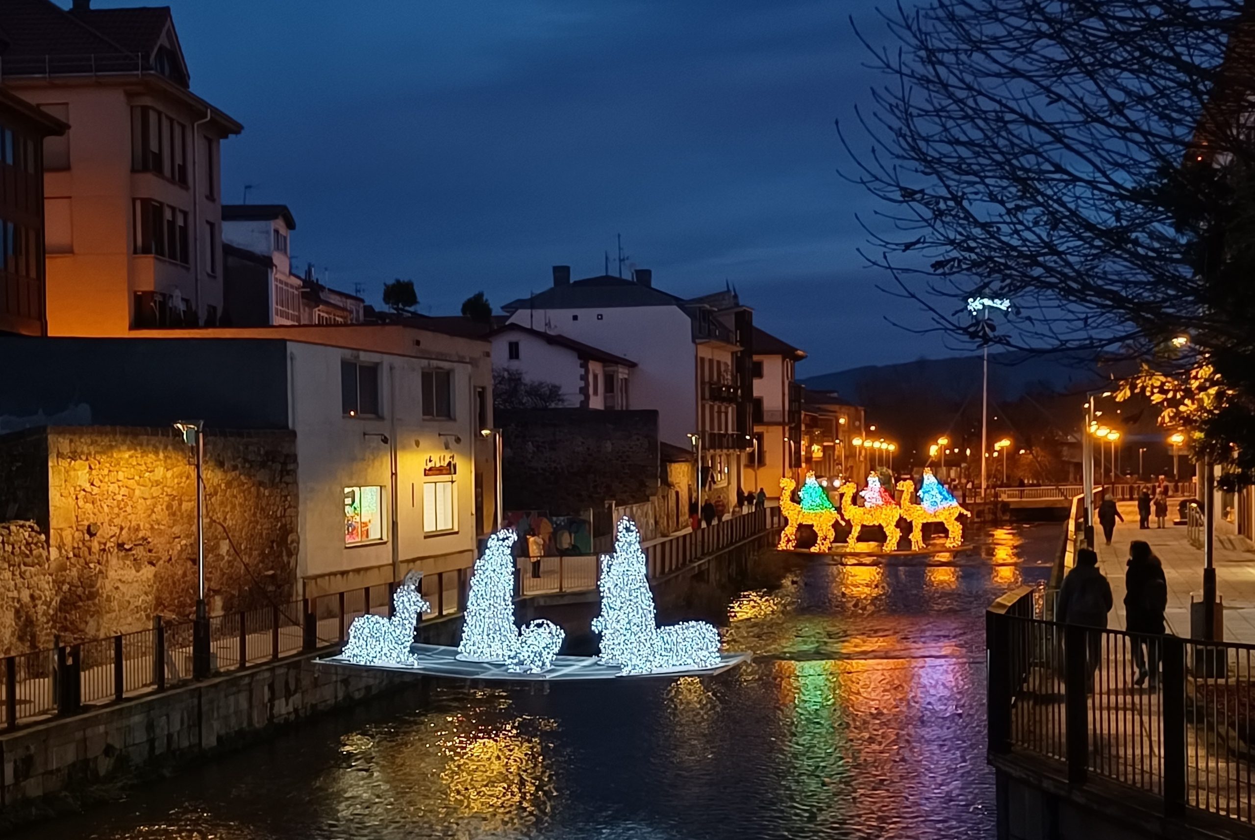 Entre los principales atractivos se encuentra el Belén luminoso, instalado nuevamente en ambas orillas del río Ebro junto al Puente Carlos III, que se ha convertido en un símbolo navideño de la ciudad. En la Plaza de España, los visitantes pueden disfrutar del imponente árbol gigante, acompañado del tradicional Belén de Sombras, una obra artesanal creada por la antigua Escuela de Aprendices de La Naval.