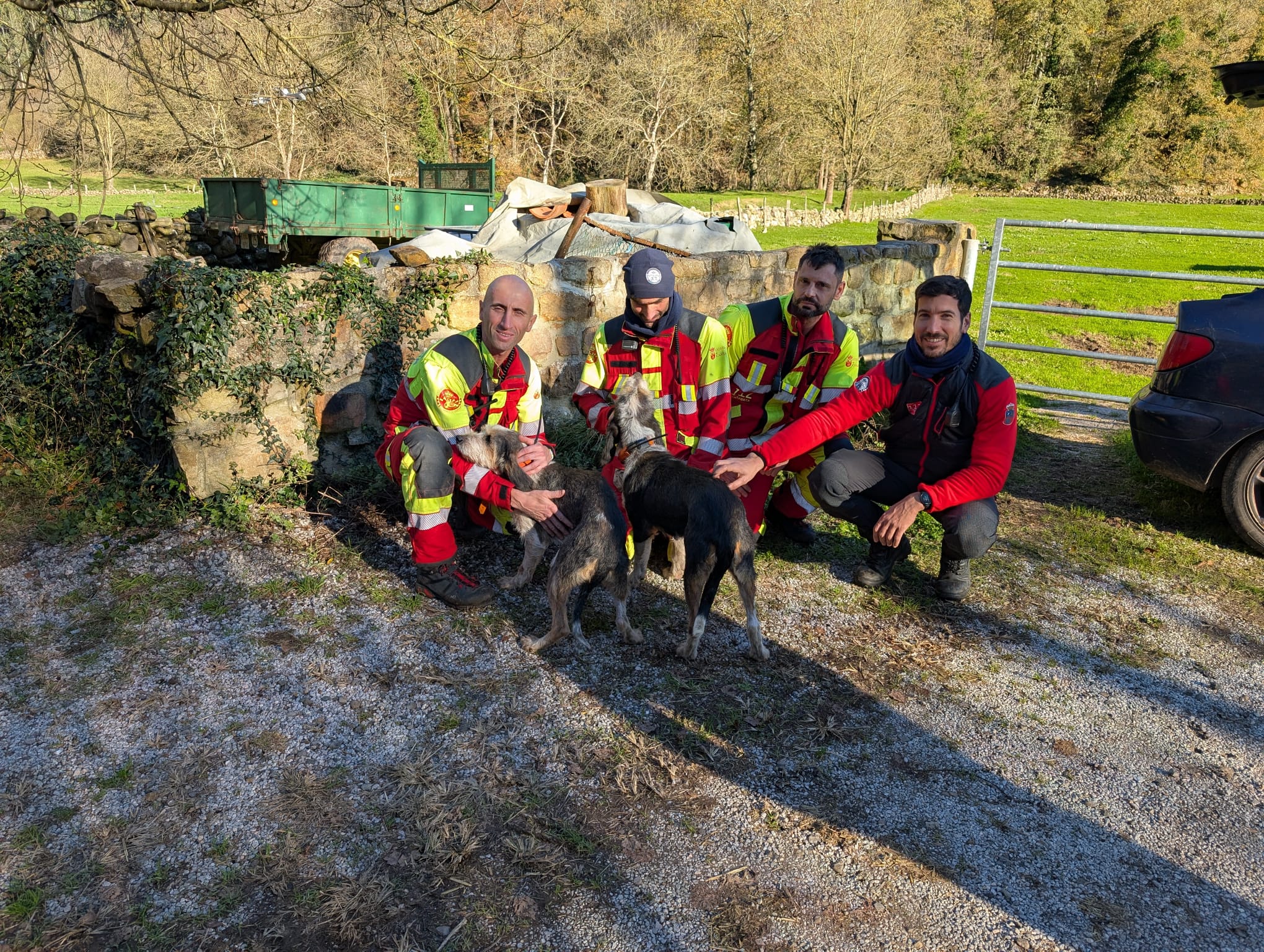 Ante la situación, los bomberos del Gobierno de Cantabria se desplazaron al lugar y, tras evaluar las condiciones, decidieron acceder a la zona mediante rapel por una pared vertical hasta llegar a un plano inferior donde se encontraban los perros. Afortunadamente, ambos animales se encontraban en buen estado de salud.