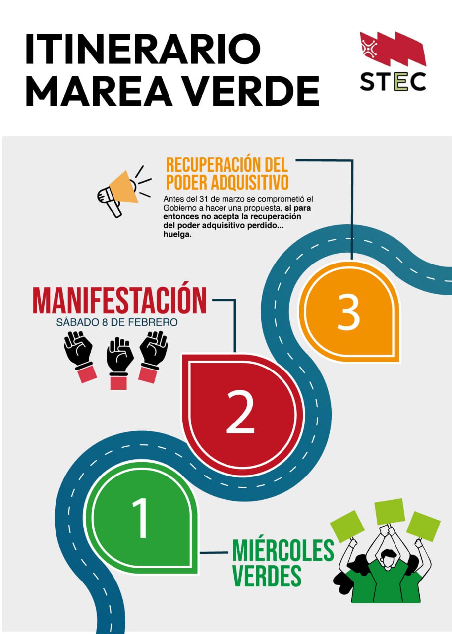 Entre las medidas previstas se incluye la reactivación de los llamados Miércoles Verdes, en los que se anima al personal de los centros educativos a organizar actividades que visibilicen sus demandas. Estas protestas desembocarán en una manifestación programada para el 8 de febrero en Santander y, de no producirse avances en las negociaciones, en una huelga general que comenzará el 31 de marzo.