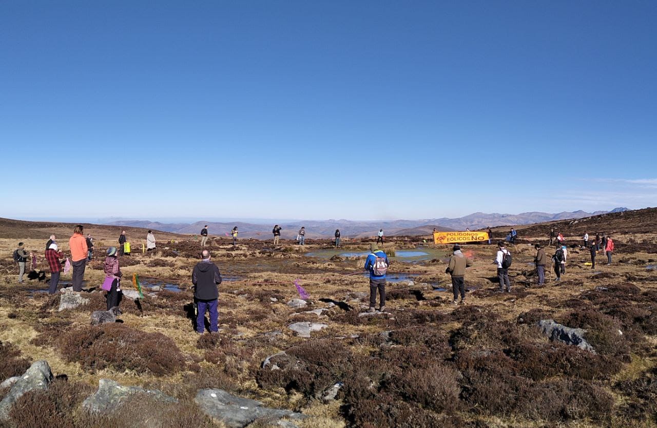 El pasado sábado 18 de enero, los Colectivos Vecinales en Defensa del Territorio, junto con vecinos de distintas localidades de Cantabria, organizaron una marcha en la Sierra del Escudo para comprobar sobre el terreno los efectos que las obras del polígono eólico están causando en los humedales y turberas de la zona. La jornada incluyó una acción simbólica llamada «Abrazar el humedal», destinada a visibilizar los daños que estas obras están provocando en ecosistemas que figuran en las bases de datos del Gobierno de Cantabria como espacios protegidos.