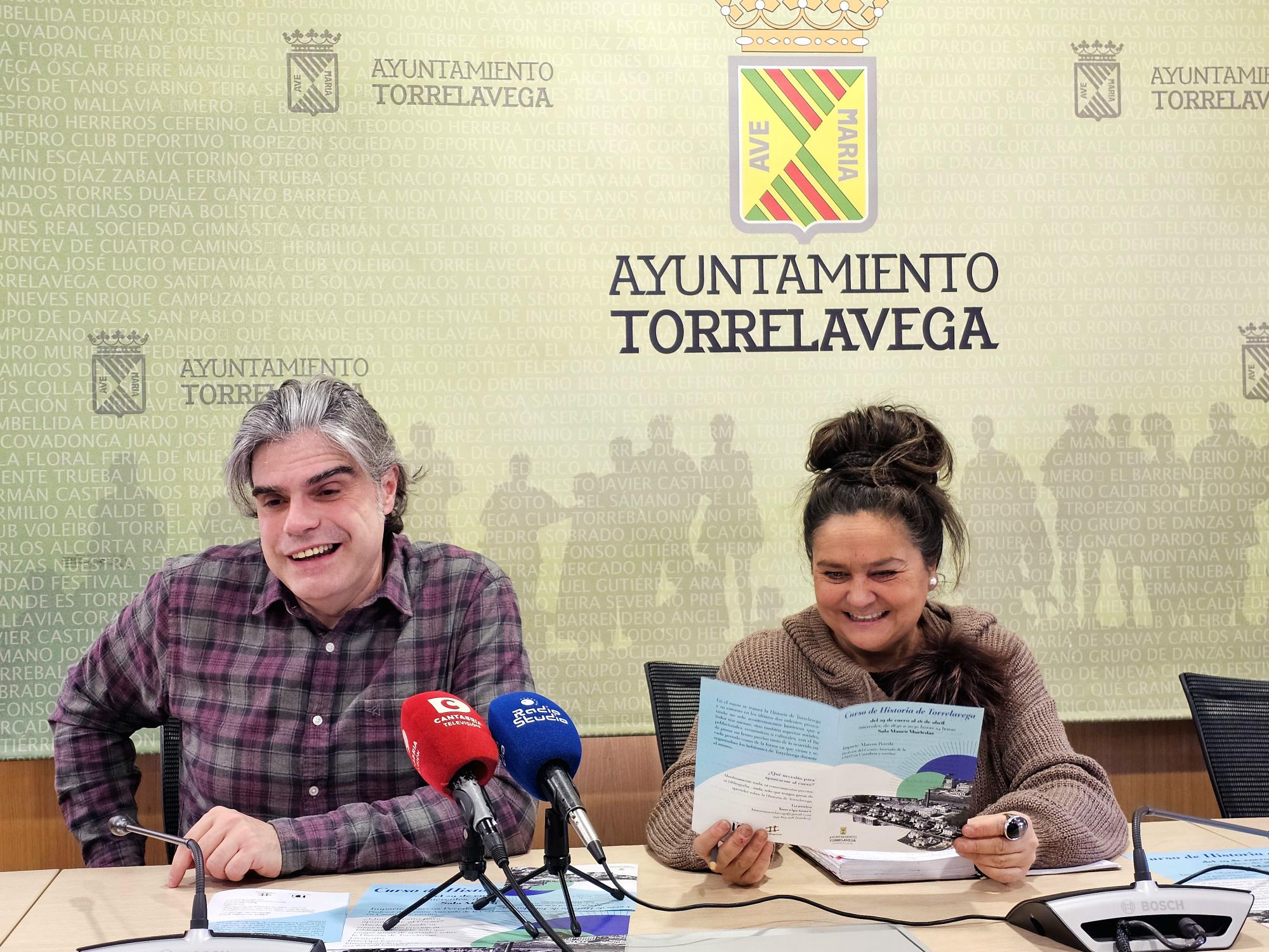 La concejal de Cultura de Torrelavega, Esther Vélez, junto al escritor y profesor de la UNED Marcos Pereda, ha presentado este lunes el ciclo de conferencias ‘Historia de Torrelavega’, una iniciativa que tendrá lugar en la Sala Mauro Muriedas entre el 29 de enero y el 16 de abril.