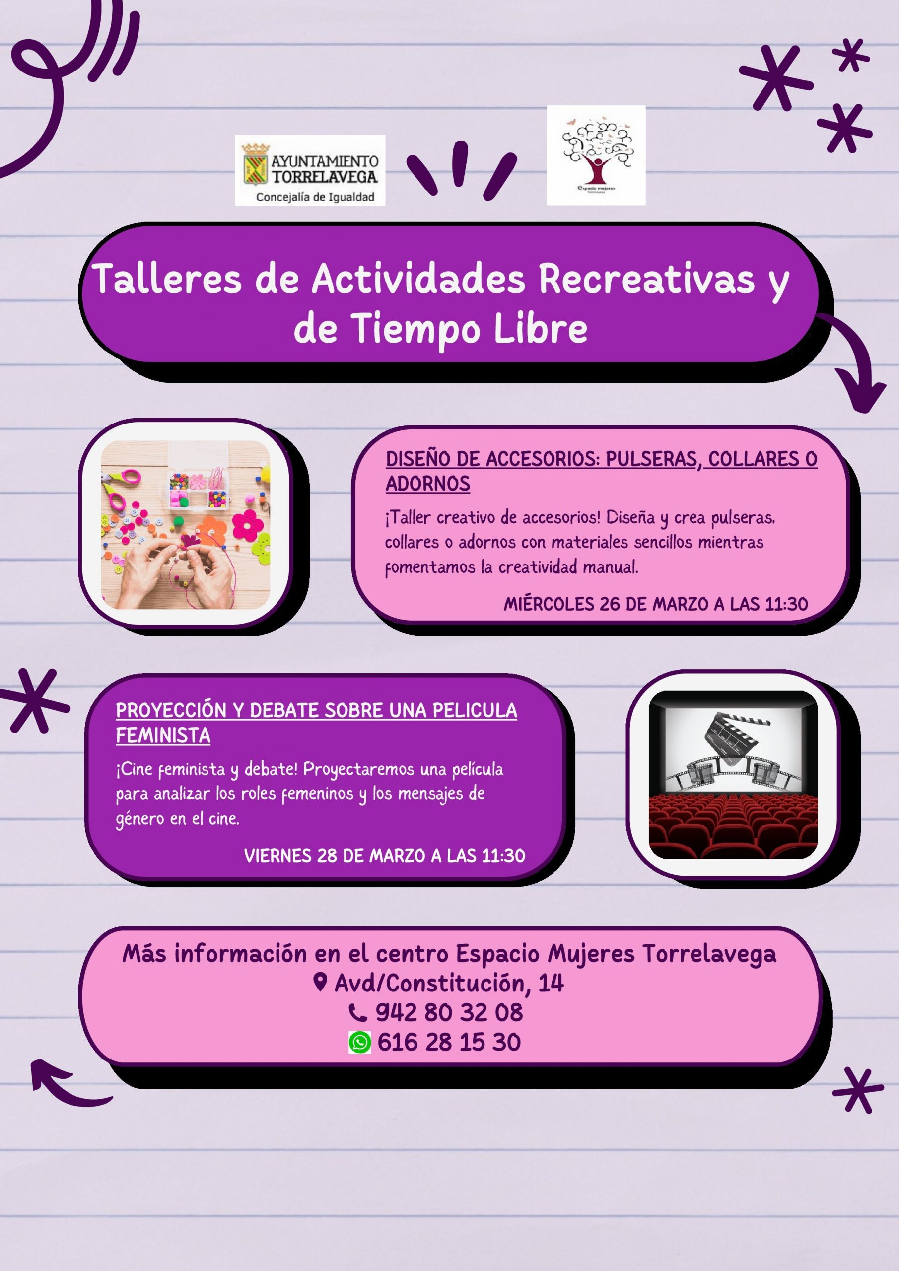 El programa incluye talleres creativos como diseño de accesorios y pintura en tela, sesiones de autocuidado y mindfulness, así como proyecciones de cine y documentales con debates centrados en el papel de la mujer en la sociedad. Además, se ofrecerán espacios de reflexión sobre empoderamiento femenino, gestión de conflictos y escritura creativa.