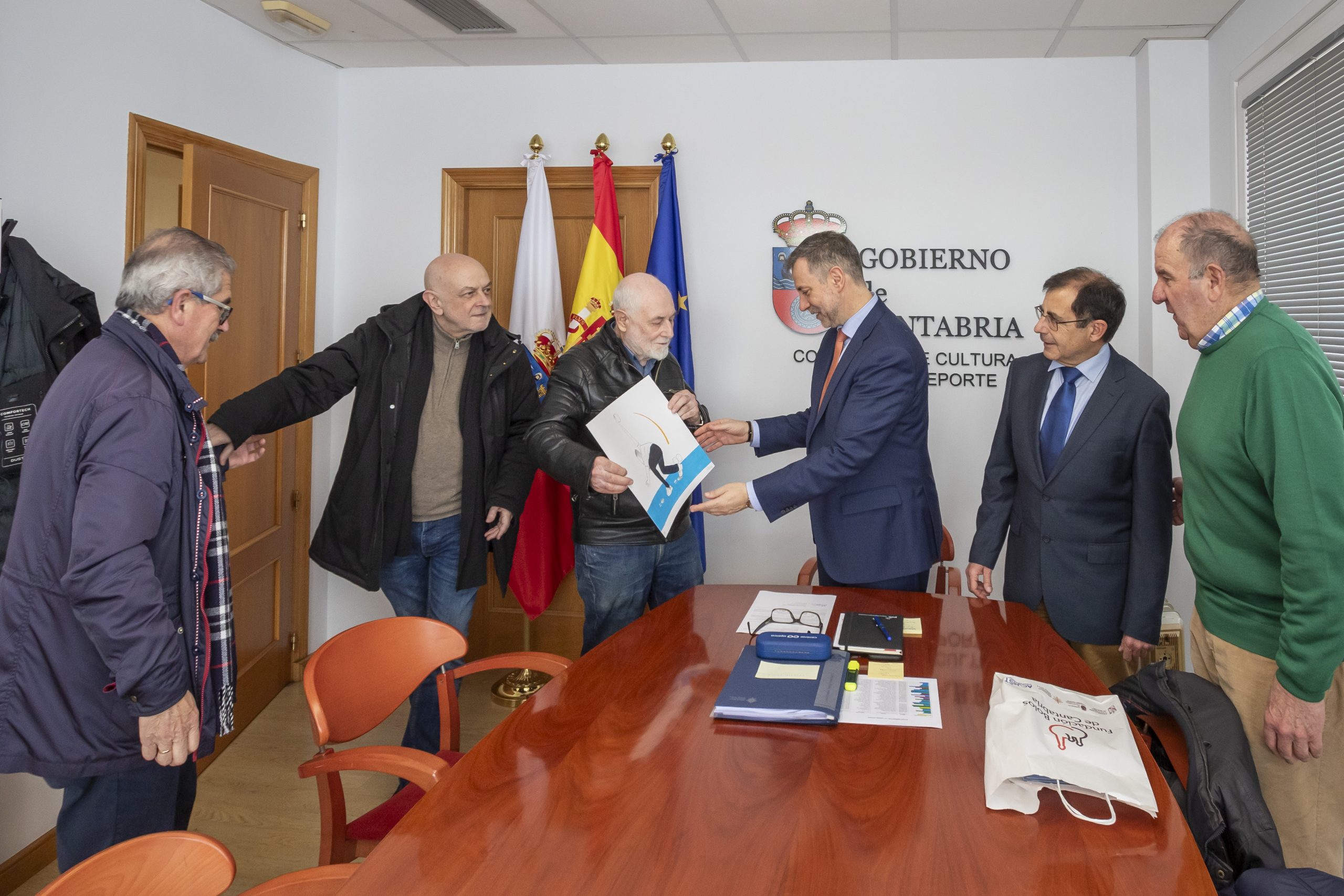 El pintor cántabro Pedro Sobrado ha hecho entrega al consejero de Cultura, Turismo y Deporte, Luís Martínez Abad, de la primera litografía de la serie ‘Juego de Bolos’, una obra encargada por la Fundación Bolos de Cantabria. Durante el acto, el titular de Cultura agradeció este gesto, destacando los «estrechos vínculos que existen entre nuestro juego tradicional y la cultura».