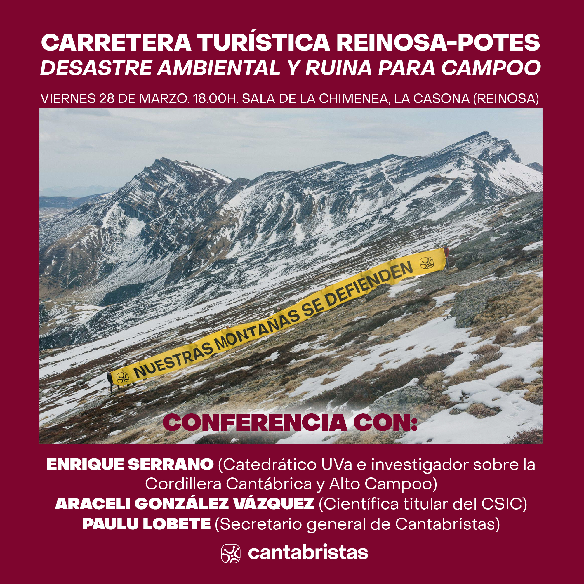 Cantabristas ha organizado para este viernes, a las 18:00 horas, en la Sala de la Chimenea de La Casona de Reinosa, una conferencia para abordar las consecuencias del polémico proyecto de la carretera turística Reinosa-Potes. La iniciativa, promovida por el consejero de Fomento, Roberto Media (PP), ha suscitado una notable oposición, incluyendo el rechazo de más de 200 expertos y profesionales que, el pasado 5 de marzo, suscribieron un manifiesto en contra de su desarrollo.