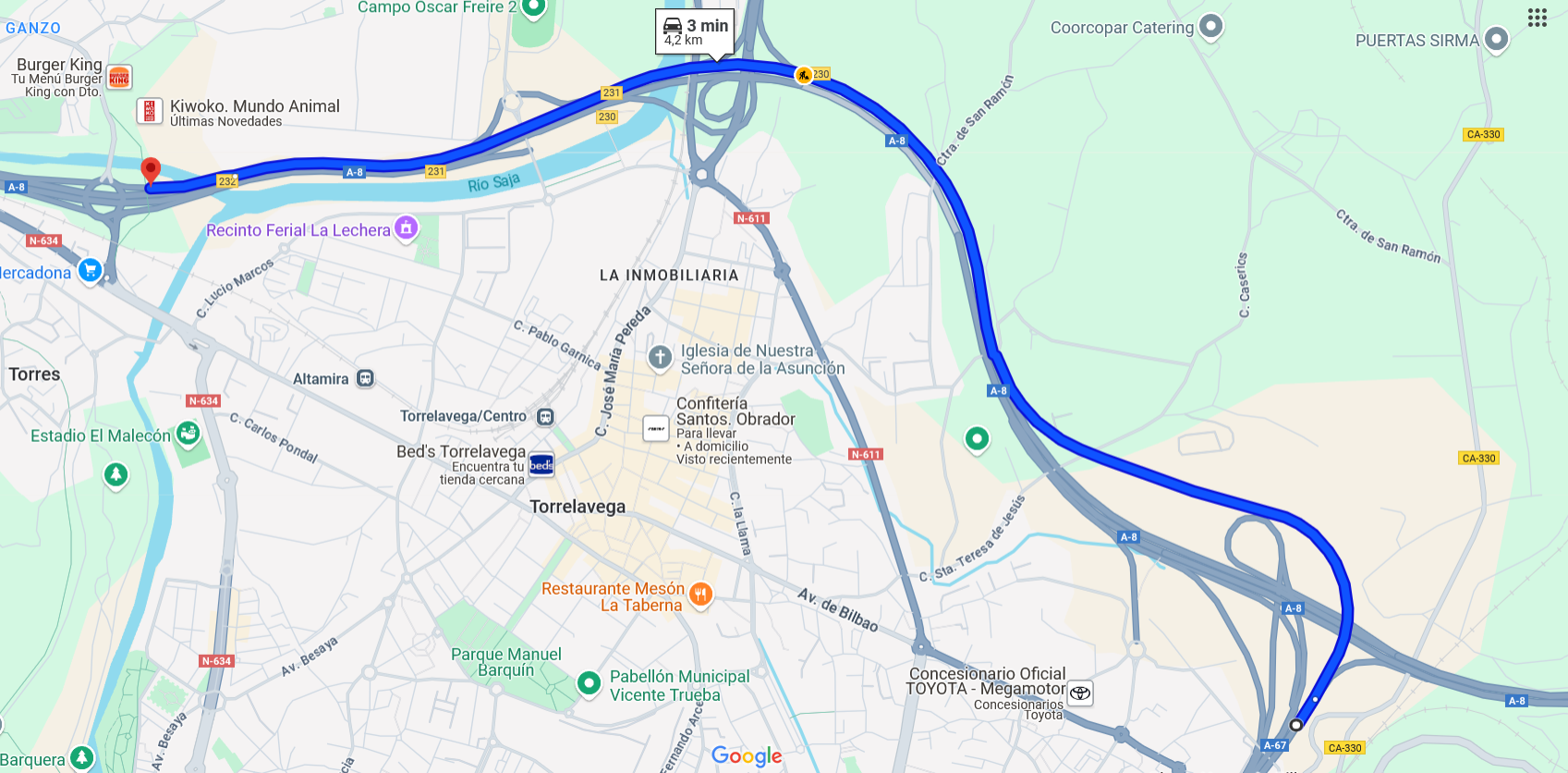 - Desde Bilbao o Palencia por la A-8: también se desviarán por el enlace 231, siguiendo el mismo trayecto alternativo por la N-611 hasta la incorporación en Polanco.