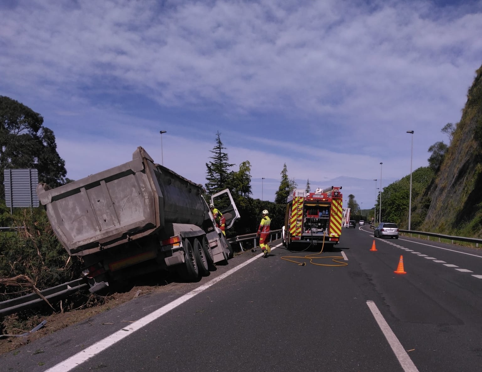 El Centro de Atención a Emergencias 112 Cantabria ha coordinado este viernes la intervención de bomberos del Gobierno de Cantabria, 061, Guardia Civil y Carreteras del Estado tras la salida de vía de un camión en el kilómetro 172 de la A-8, a la altura de Laredo.