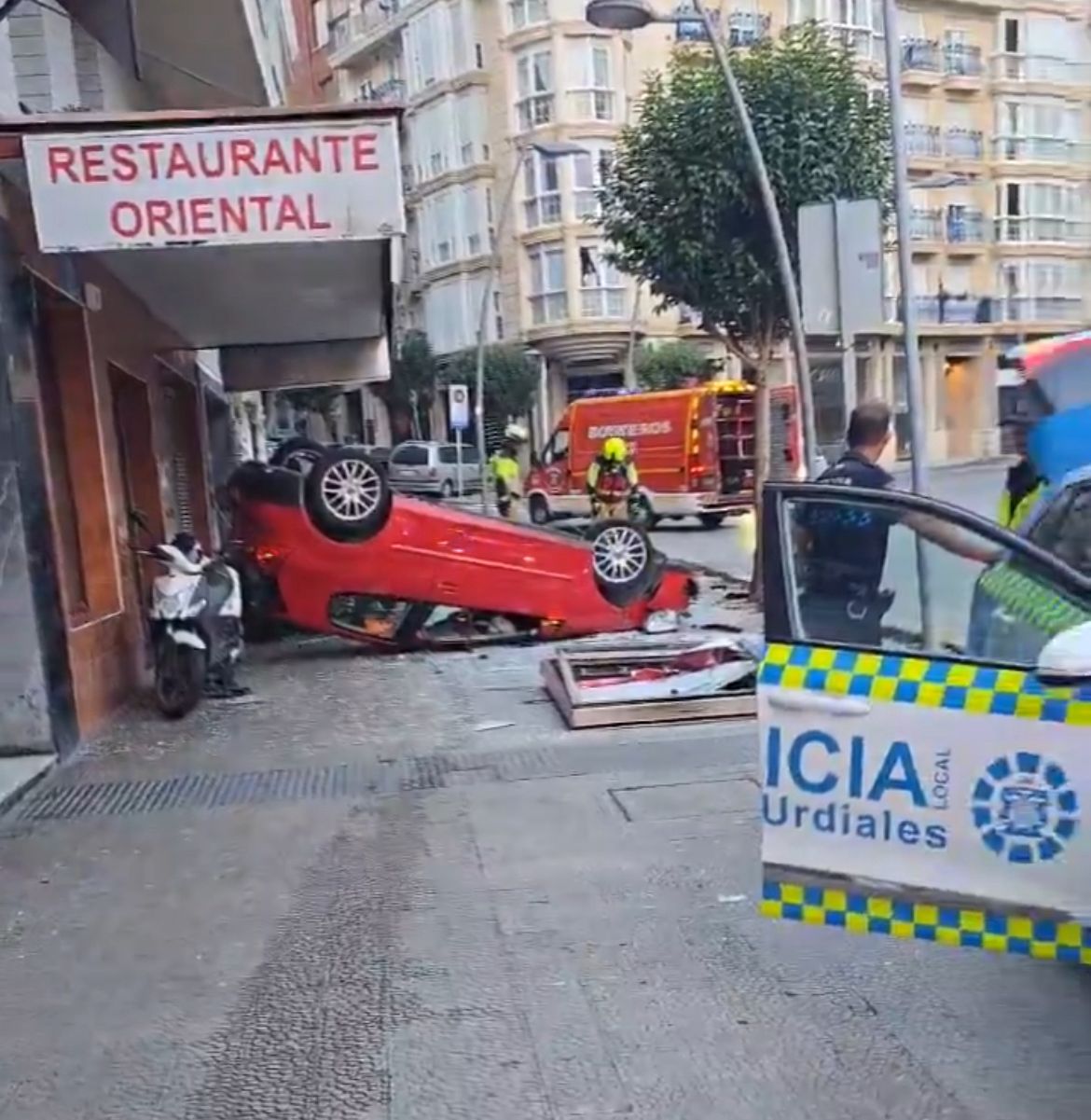 Esta mañana, a las 07:11 horas, se ha producido un accidente de tráfico en la calle La Ronda de Castro Urdiales, cuando un vehículo colisionó contra un árbol y terminó volcado sobre la acera.