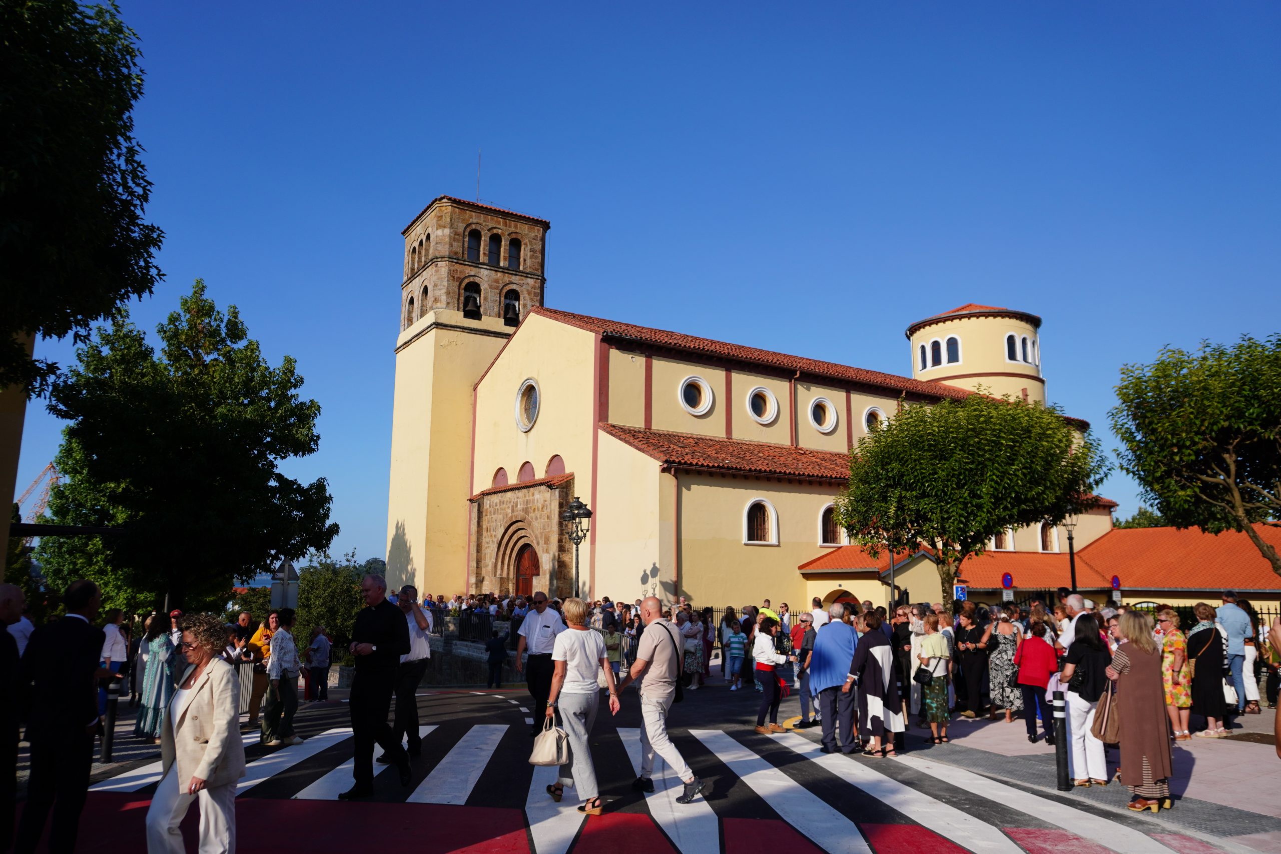 La reapertura estuvo marcada por una gran expectación y una amplia participación vecinal. El acto comenzó a las 18:45 horas, cuando el Obispo de Santander, Arturo Ros, abrió la puerta principal del templo, un gesto cargado de simbolismo que fue recibido con aplausos por los fieles congregados. A las 19:00 horas, Ros presidió una misa solemne acompañado por los coros parroquiales, que interpretaron varias piezas religiosas y populares, entre ellas el himno de Astillero, lo que contribuyó a la atmósfera emotiva del momento.
