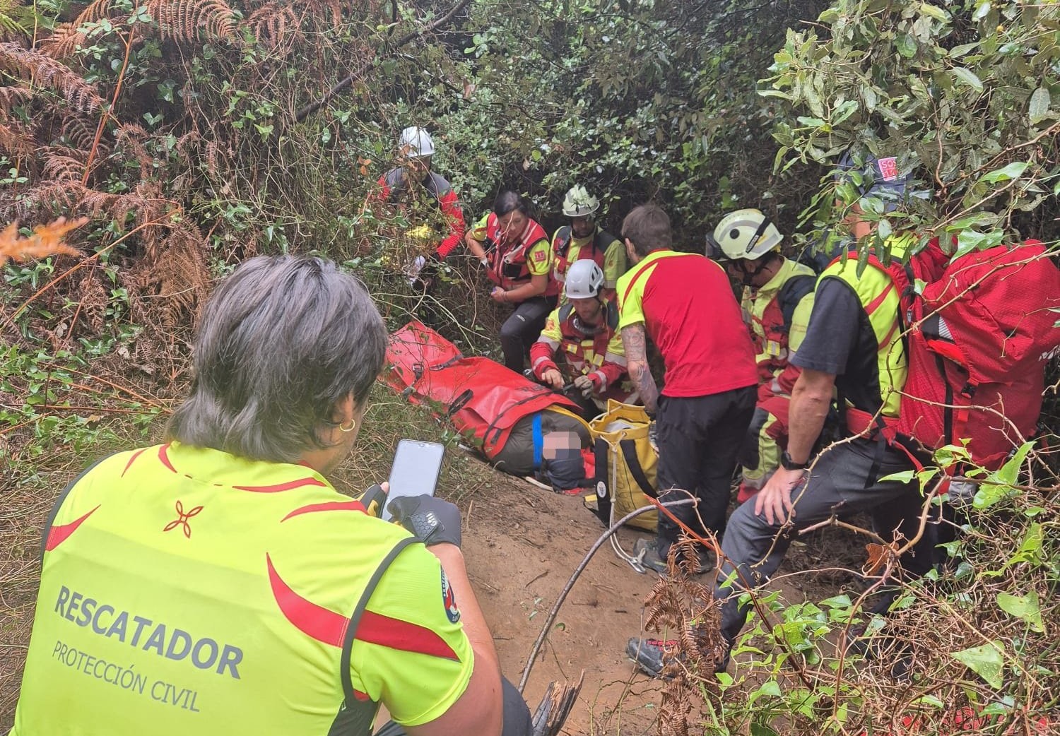 La joven fue atendida en primera instancia por la médico del operativo y posteriormente asegurada en una camilla de rescate. Los efectivos la portearon durante el descenso, por un terreno embarrado y con pendiente, hasta alcanzar un punto accesible para la ambulancia del 061, que la trasladó al hospital de Laredo.