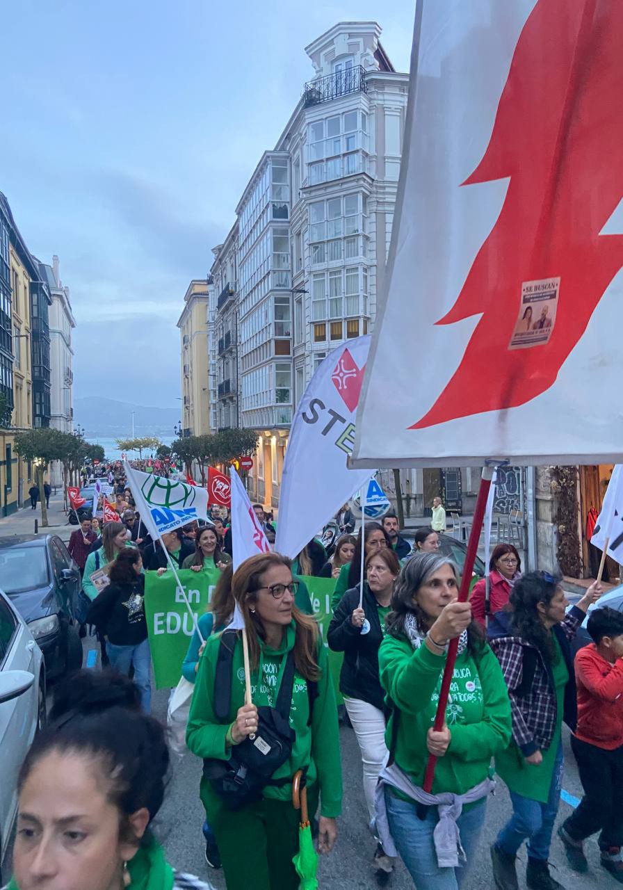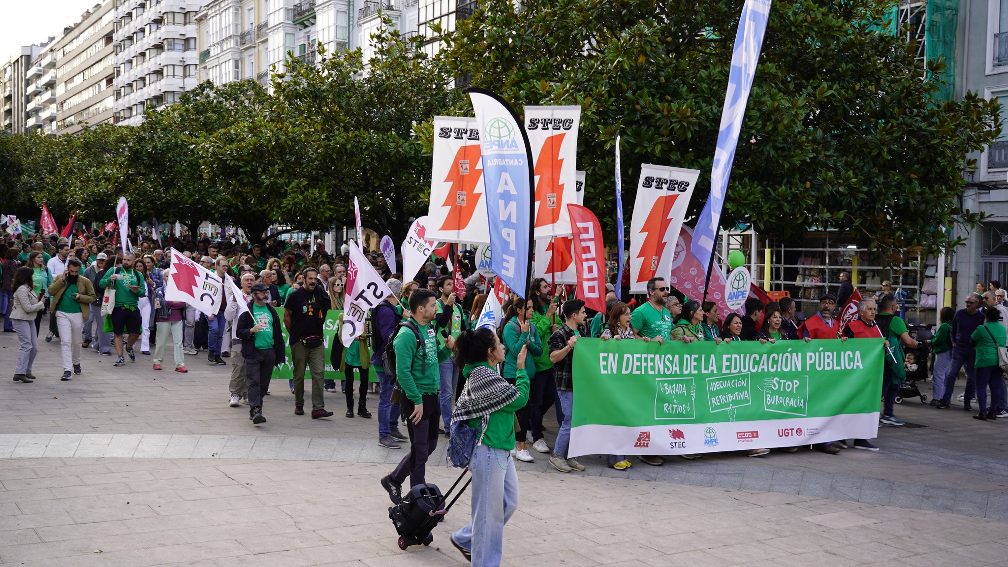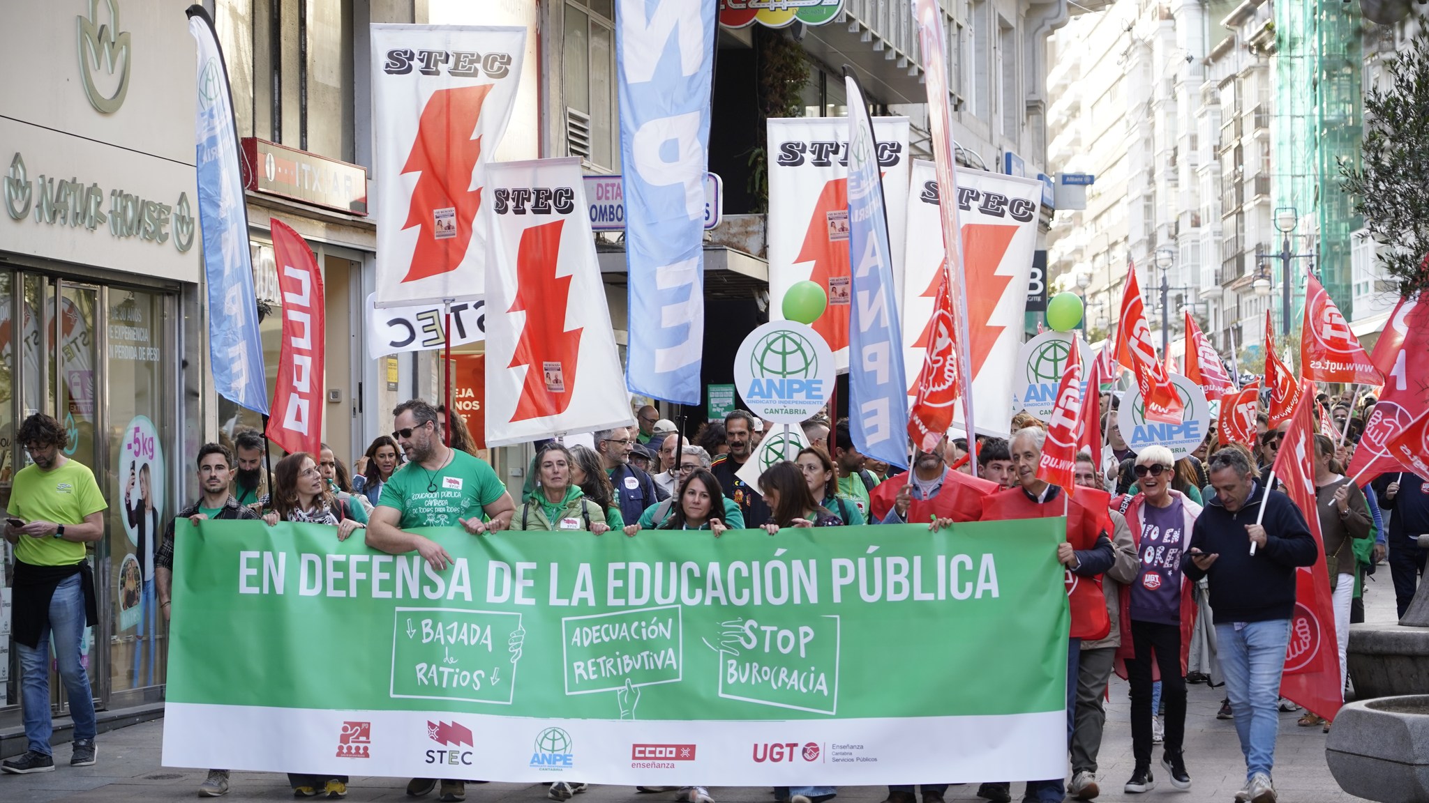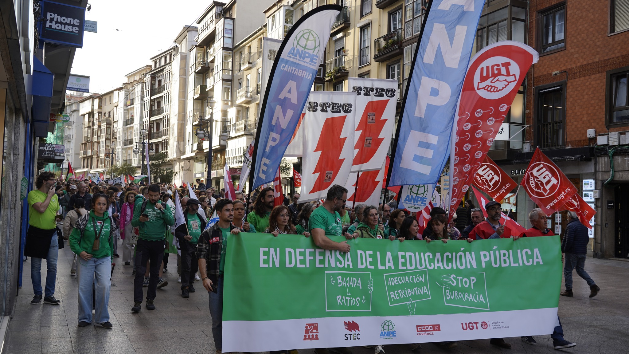 La movilización ha arrancado en la Plaza de Numancia bajo una gran pancarta con el lema “En defensa de la educación pública”. Al ritmo de consignas y petardos, la marcha ha recorrido la calle Burgos y el Paseo Pereda, donde los manifestantes realizaron una sentada simbólica antes de continuar hasta la sede del Gobierno autonómico en Peña Herbosa y concluir en el Centro Cultural Doctor Madrazo, donde se leyó un manifiesto. En este texto, los organizadores reafirmaron su compromiso de continuar la lucha “por la adecuación retributiva, la mejora de las condiciones laborales y la dignidad de la profesión docente”.