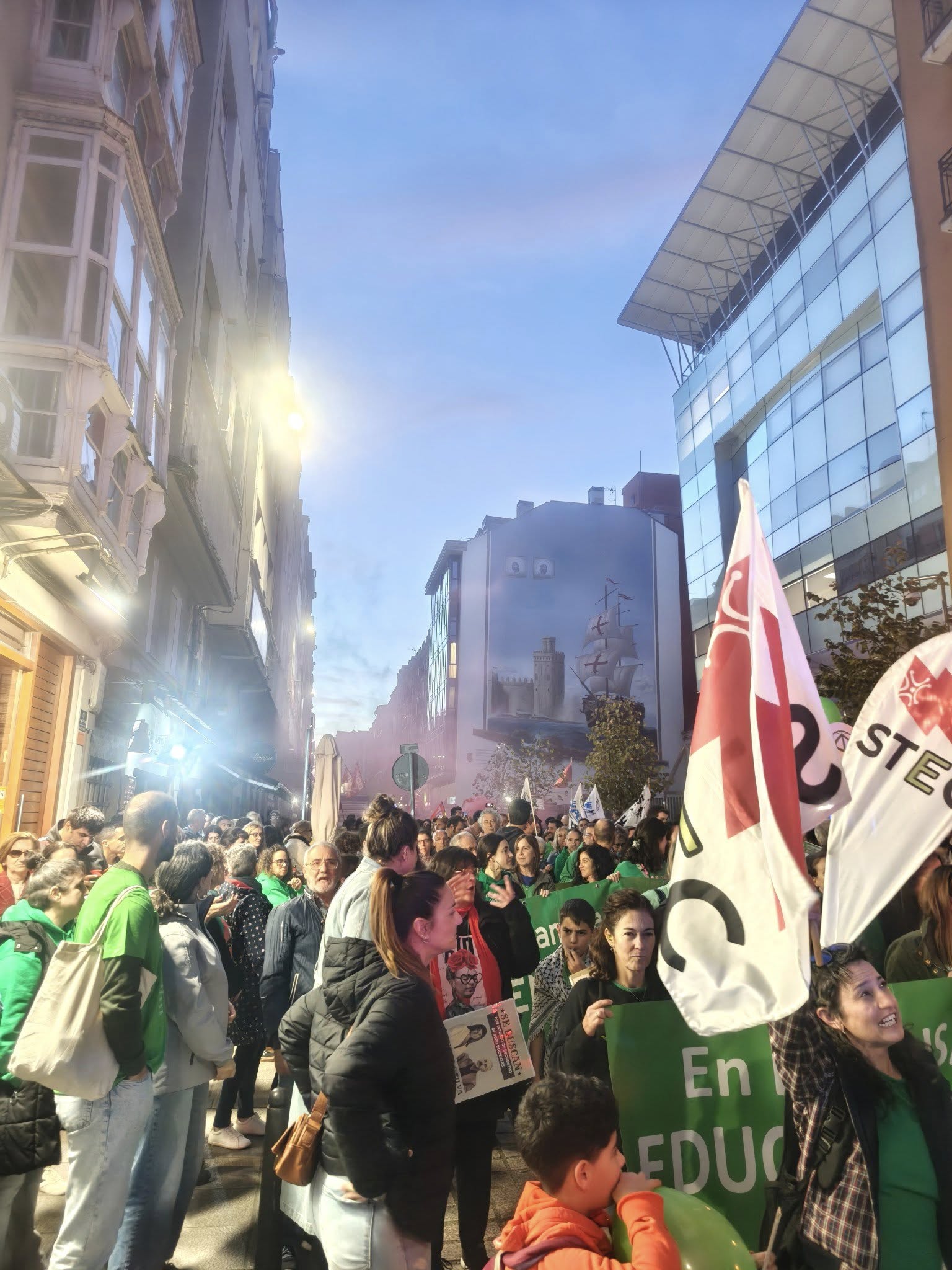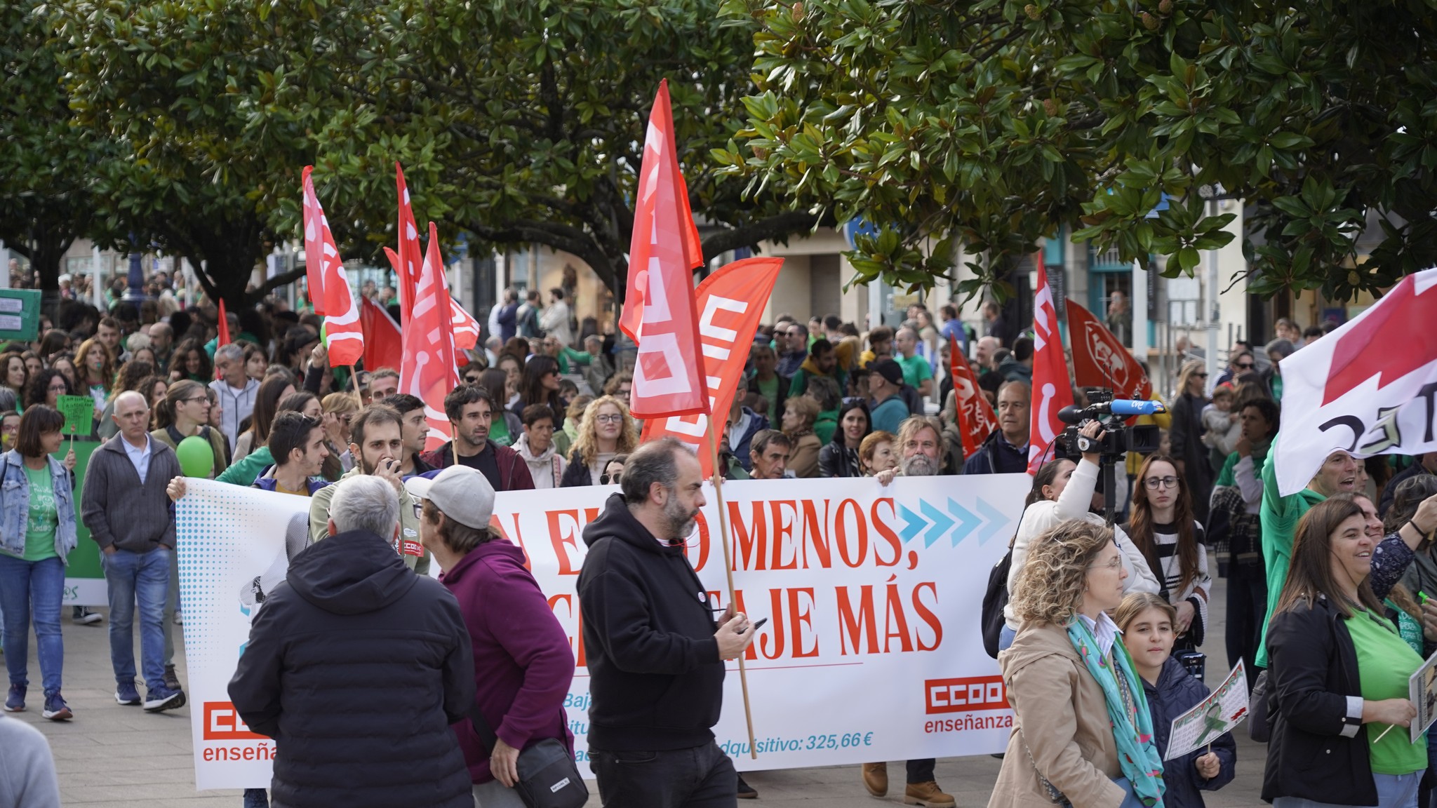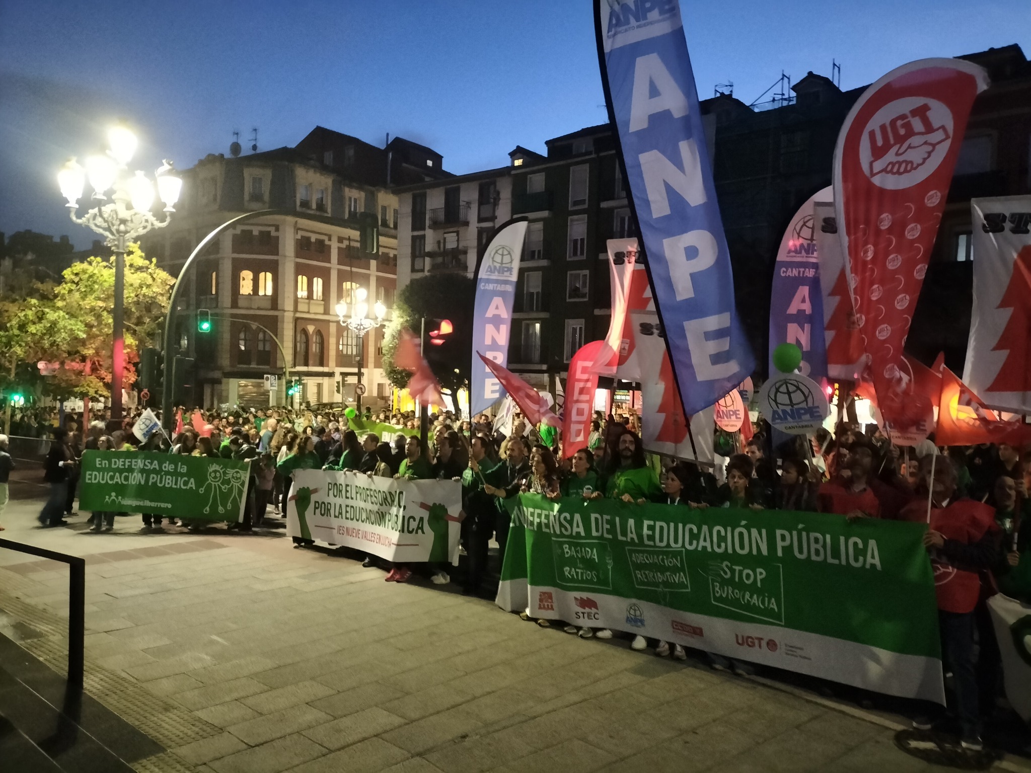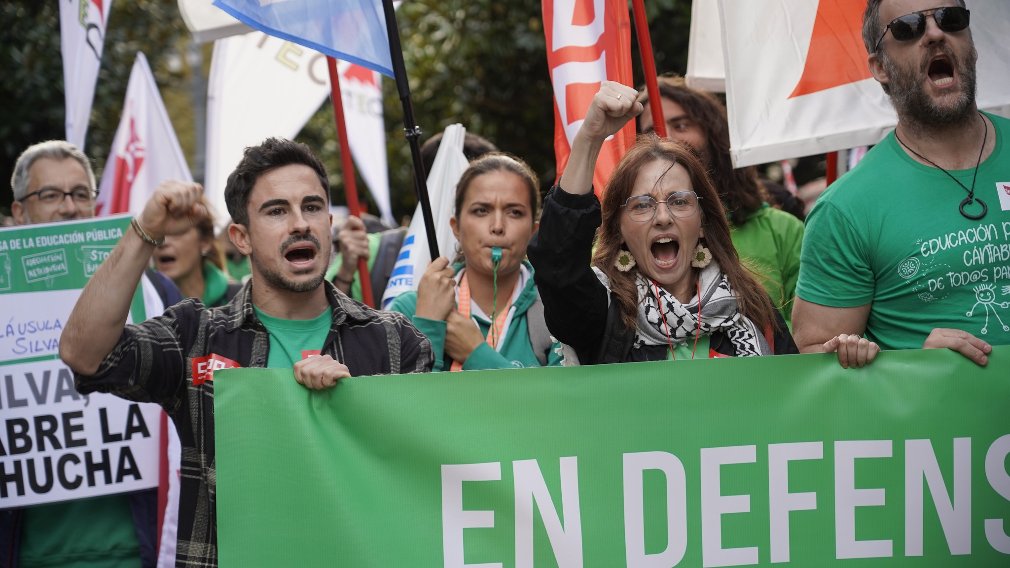 La movilización ha arrancado en la Plaza de Numancia bajo una gran pancarta con el lema “En defensa de la educación pública”. Al ritmo de consignas y petardos, la marcha ha recorrido la calle Burgos y el Paseo Pereda, donde los manifestantes realizaron una sentada simbólica antes de continuar hasta la sede del Gobierno autonómico en Peña Herbosa y concluir en el Centro Cultural Doctor Madrazo, donde se leyó un manifiesto. En este texto, los organizadores reafirmaron su compromiso de continuar la lucha “por la adecuación retributiva, la mejora de las condiciones laborales y la dignidad de la profesión docente”.