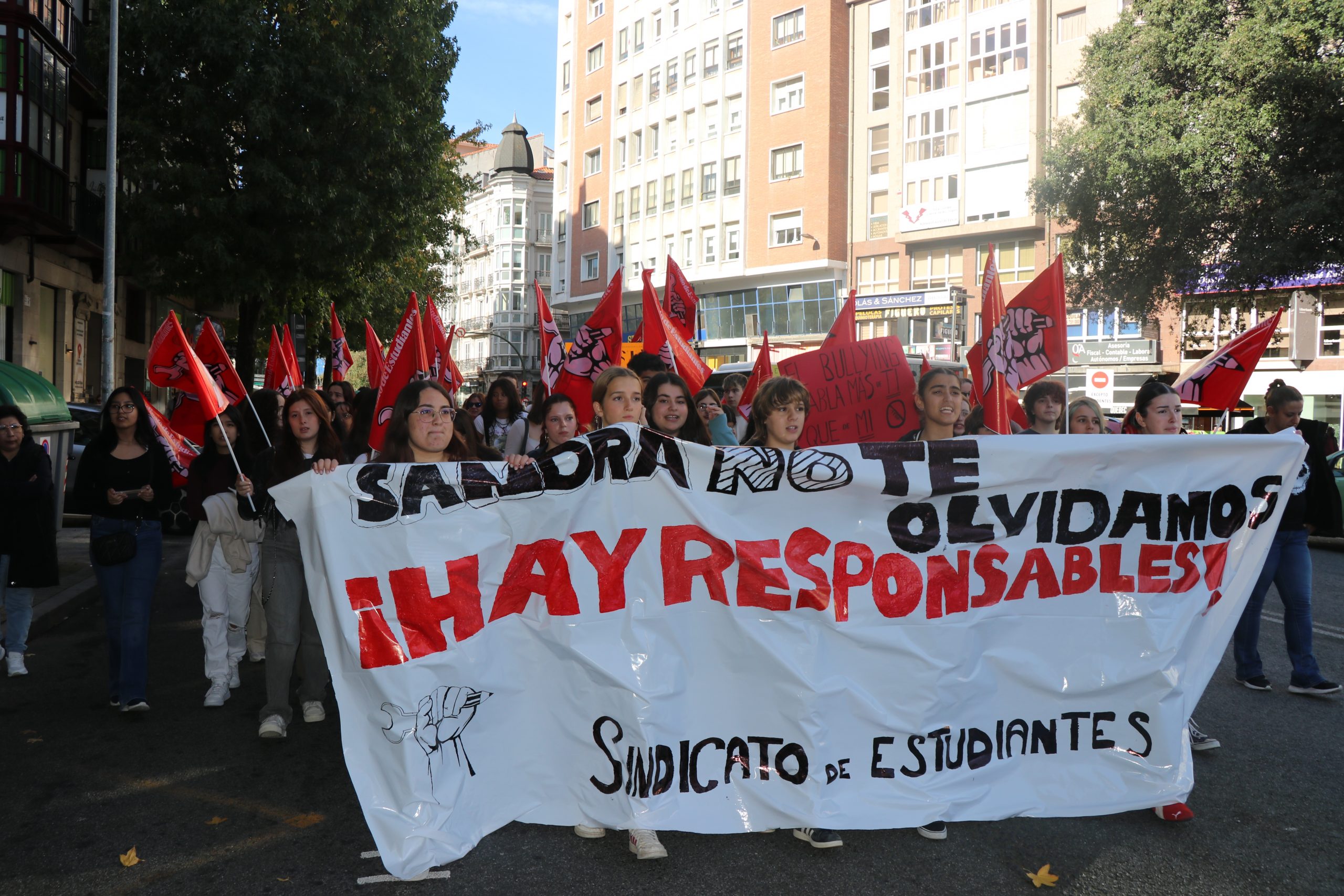 Cientos de jóvenes participaron este martes en Santander en una jornada de huelga y movilización convocada por el Sindicato de Estudiantes para exigir justicia por la muerte de Sandra Peña, la alumna sevillana de 14 años que se quitó la vida tras sufrir acoso en el colegio concertado Irlandesas de Loreto, en Sevilla.