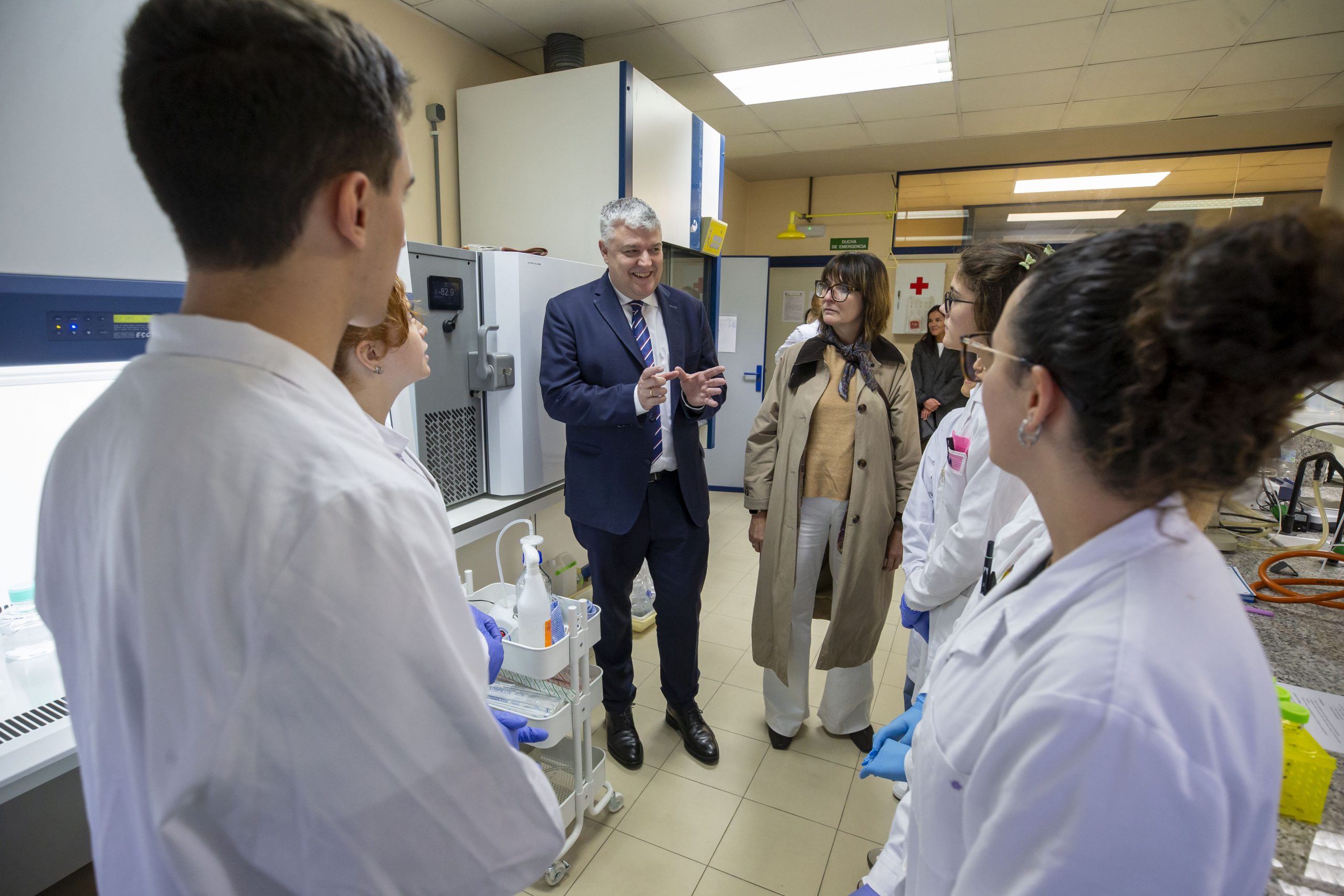 Durante la visita, el consejero ha podido conocer de primera mano el trabajo que realiza el alumnado en el laboratorio de cultivos celulares, donde adquieren competencias técnicas aplicables en centros de investigación del máximo nivel, como el Instituto de Investigación Sanitaria Valdecilla (IDIVAL) o el Instituto de Biomedicina y Biotecnología de Cantabria (IBBTEC). En el recorrido ha estado acompañado por la directora general de Fondos Europeos, Marta García; la directora general de Formación Profesional y Educación Permanente, Cristina Montes; la directora del centro, Ana Isabel Fernández; y una delegación de representantes de la Comisión Europea, del Ministerio de Trabajo y de las entidades sociales que participan en el comité de seguimiento del Programa FSE+ Cantabria 2021-2027.