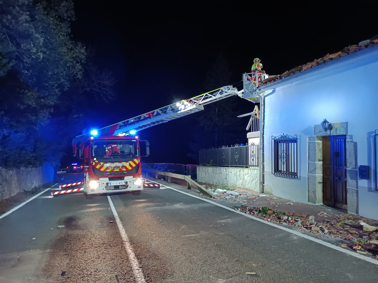 Los bomberos de la comunidad de Cantabria han intervenido este miércoles en una compleja actuación tras producirse un desprendimiento de parte de un balcón y del tejado en una vivienda ubicada en el municipio de Ruesga. Según han informado fuentes del servicio de emergencias, tras asegurar la zona y retirar los elementos con riesgo de caída sobre la vía pública, también procedieron a sanear una parte de la estructura que amenazaba con desplomarse sobre la carretera adyacente.