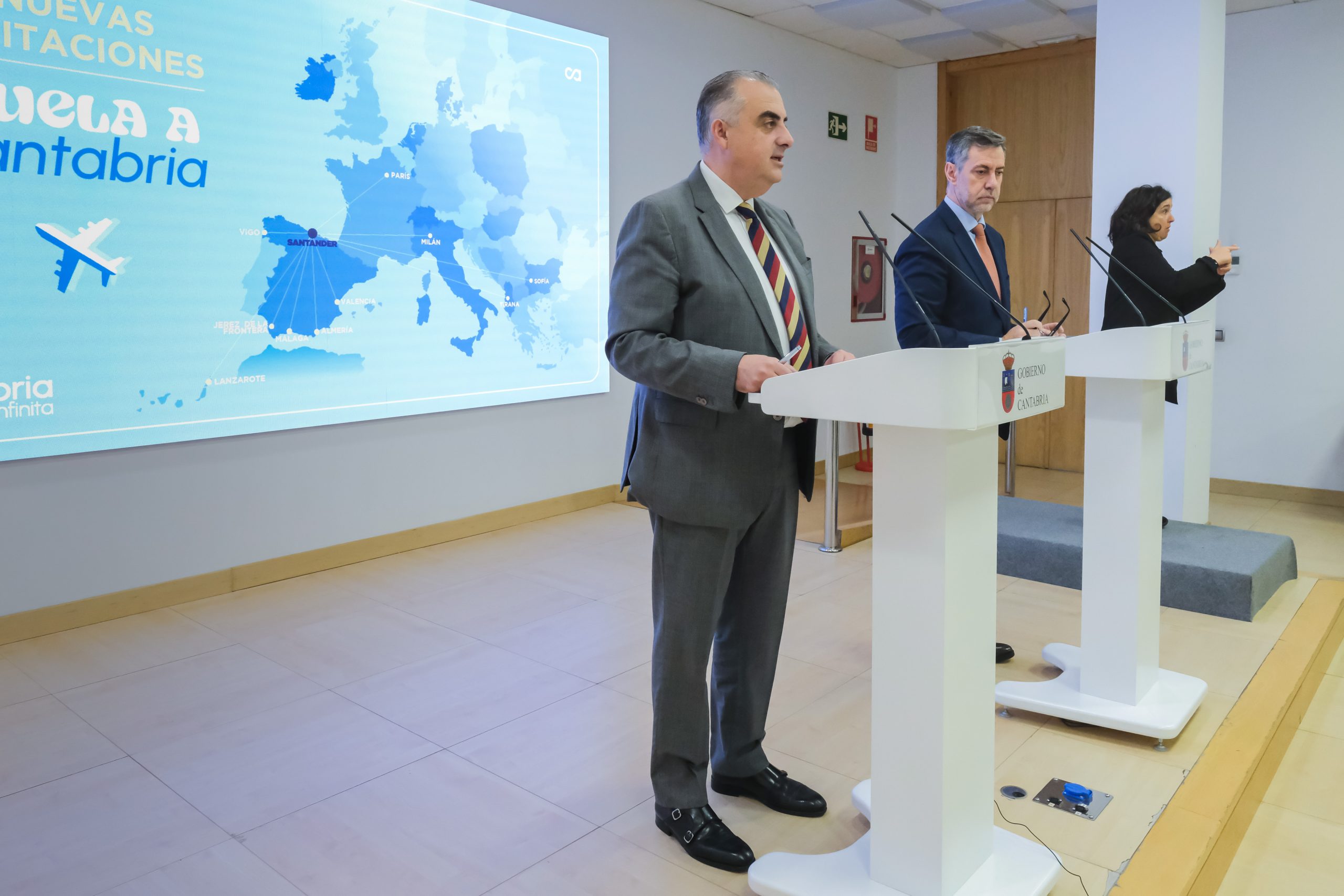 El aeropuerto Seve Ballesteros-Santander dará un salto cualitativo la próxima temporada de verano con la apertura de una ruta directa a Tirana (Albania) y la vuelta de las conexiones con París y Milán, según han desgranado hoy los consejeros de Fomento, Vivienda, Ordenación del Territorio y Medio Ambiente, Roberto Media, y de Cultura, Turismo y Deporte, Luis Martínez Abad, en una rueda de prensa conjunta. Además, han confirmado que el aeródromo cántabro sumará enlaces con Almería, Jerez, Vigo, Lanzarote y Sofía (Bulgaria) gracias a la adjudicación de servicios a distintas aerolíneas, lo que elevará a 30 el número de destinos operativos el próximo verano –16 nacionales y 14 internacionales–, un récord histórico tras los 29 que funcionaron en 2023 y 2024.
