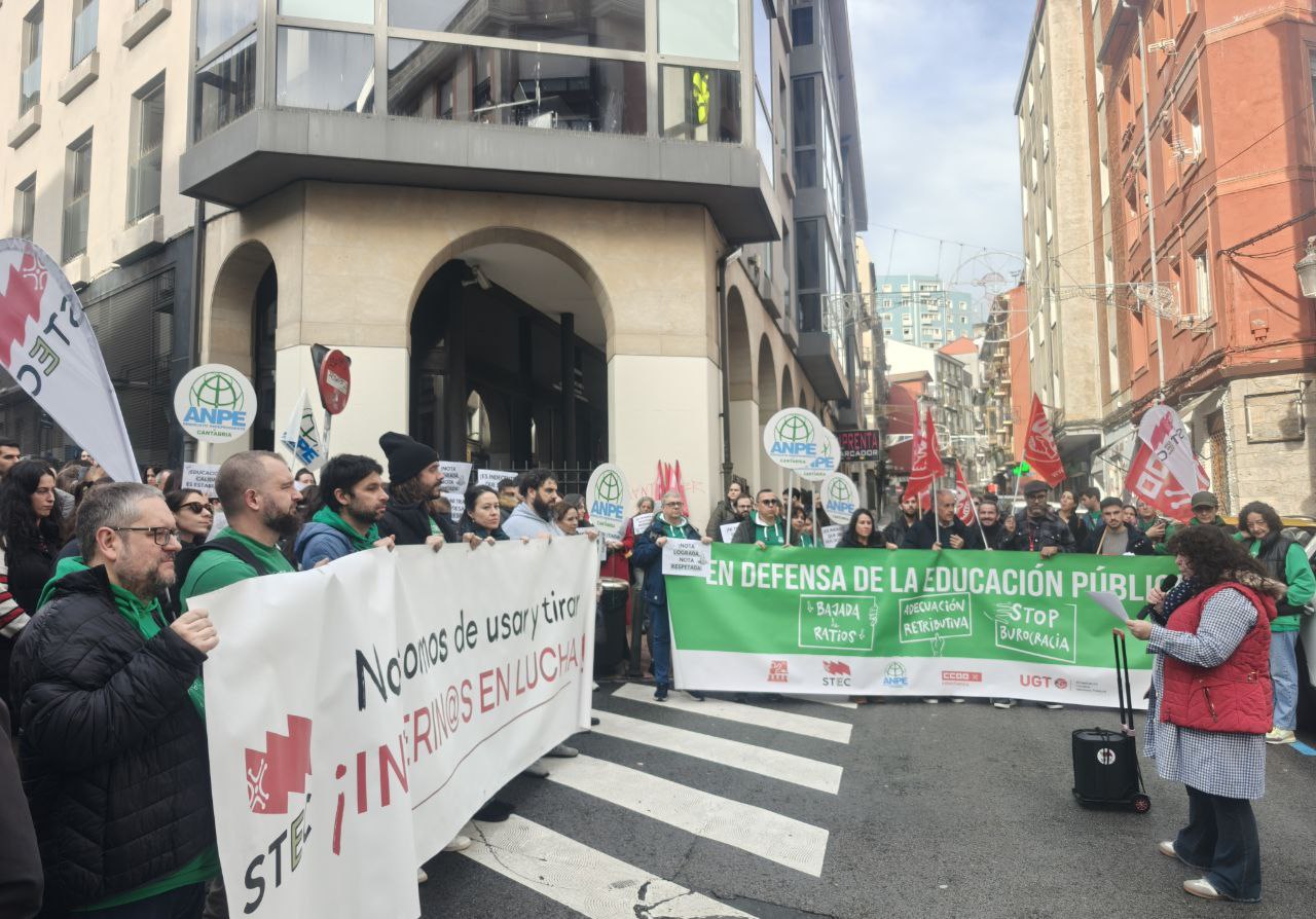 Alrededor de medio centenar de docentes se ha concentrado este mediodía ante la sede de la Consejería de Educación para reclamar un sistema de oposiciones “justo y de calidad” y exigir que el profesorado sea “escuchado” en la negociación del nuevo modelo que el Gobierno autonómico pretende aplicar en el próximo proceso del Cuerpo de Maestros, previsto para el verano. Bajo lemas como “No somos de usar y tirar. Interinos en lucha”, los asistentes han respondido a la llamada de los sindicatos que integran la Junta de Personal Docente —ANPE, STEC, UGT, CCOO y TU— después de que el departamento que dirige Sergio Silva (PP) aplazara a la semana que viene la reunión prevista para esta semana sobre el sistema de oposiciones.