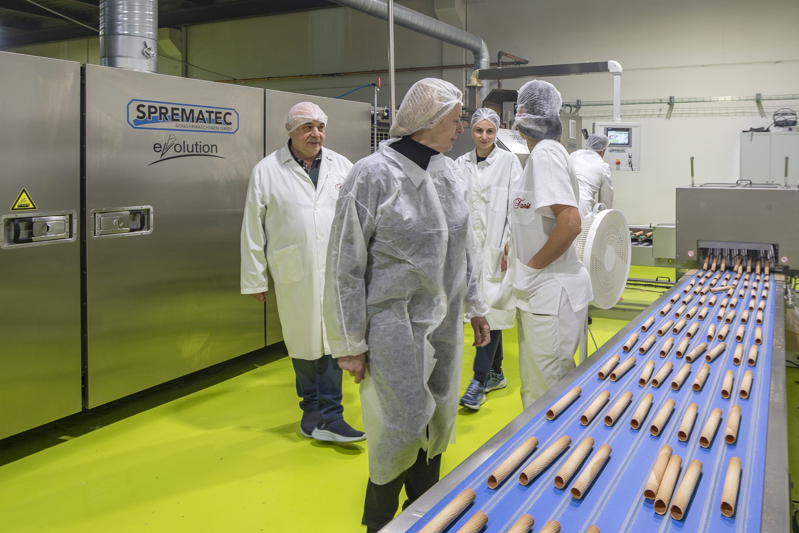 «Esta empresa demuestra cómo la innovación y la sostenibilidad permiten competir desde el medio rural y convertirse en un nombre propio dentro del agroalimentario», ha afirmado la consejera, que ha destacado especialmente su proyección exterior. Barquillos y Galletas Tanis produce actualmente más de 15.000 conos de helado diarios por hora, con el 30% de su producción destinada a mercados internacionales como prácticamente toda Europa, Corea del Sur, países árabes, Grecia o Chile, mientras que el 70% restante abastece un mercado nacional en el que está plenamente consolidada.