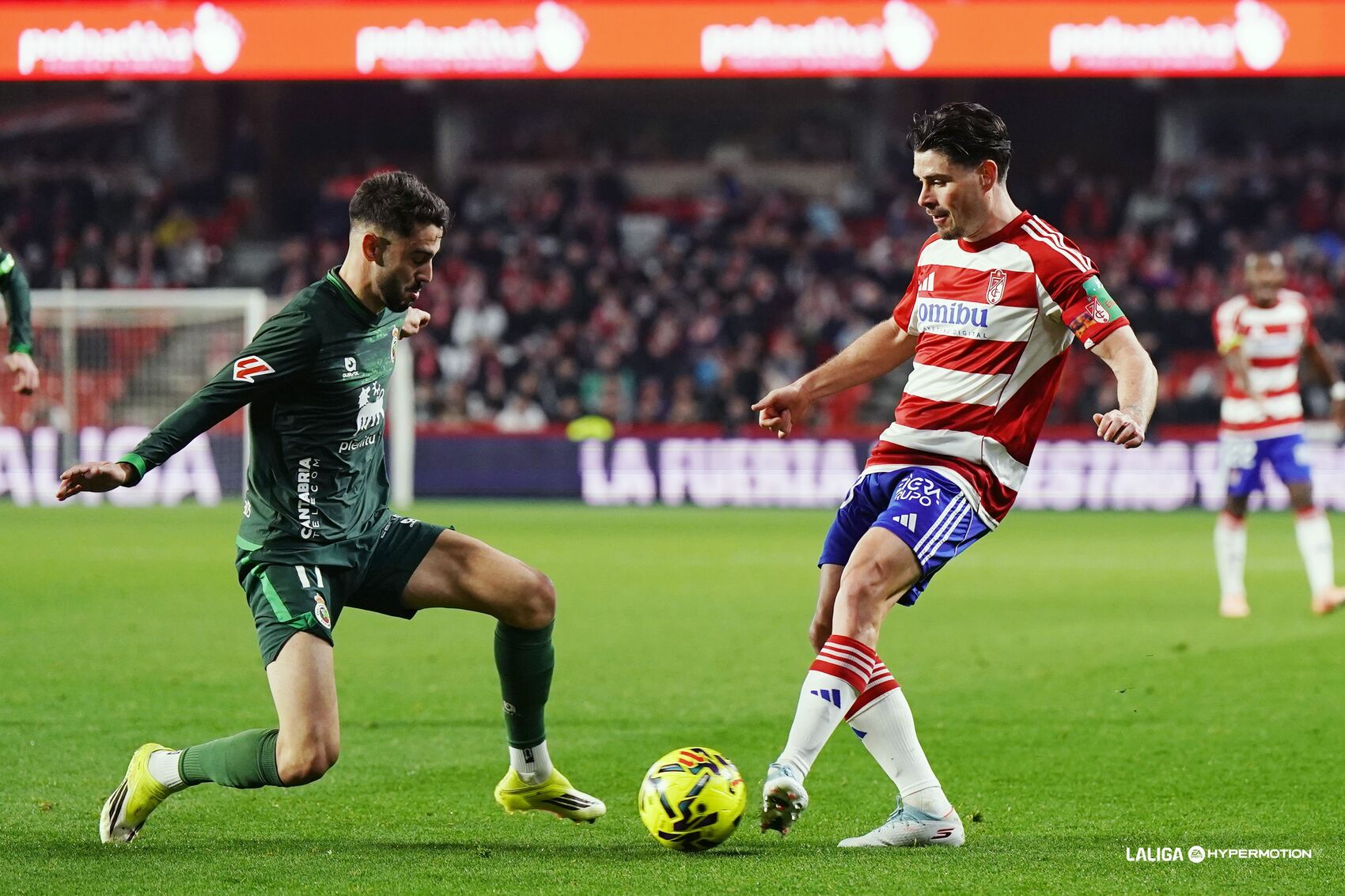 Incidencias: vigésima cuarta jornada de LaLiga Hypermotion 2025/26. Nuevo Los Cármenes. 11.673 espectadores, entre los que había 400 racinguistas. Ambos conjuntos y el trío arbitral portaron el brazalete verde de la Asociación Española Contra el Cáncer.