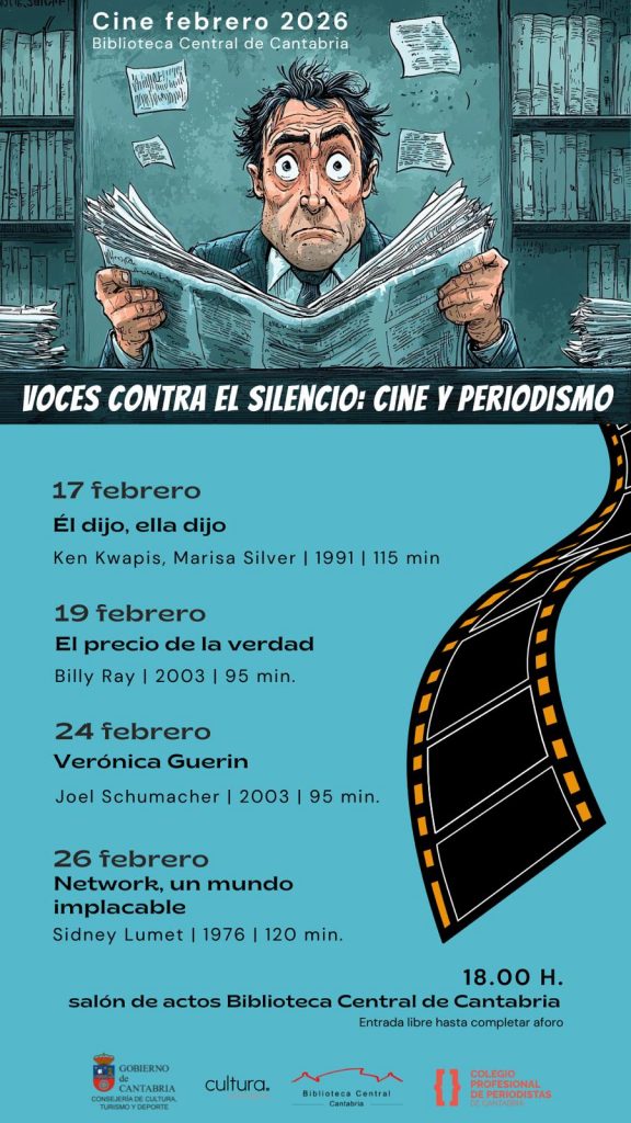 Durante este mes de febrero, la Biblioteca Central de Cantabria acogerá un nuevo ciclo dedicado a la relación entre el periodismo y el cine, una iniciativa impulsada junto al Colegio de Periodistas de Cantabria que busca abrir un espacio de reflexión sobre los retos y valores de la profesión en un contexto de cambios profundos en los medios de comunicación.