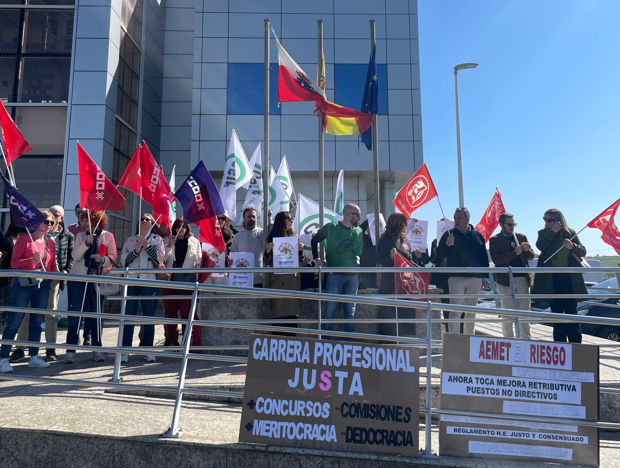 El anuncio se hizo público durante una concentración de protesta celebrada ante la sede territorial de la AEMET en Cantabria, en la que participaron representantes de los tres sindicatos en la Administración General del Estado (AGE): Carmen Ruiz, delegada de UGT y presidenta de la Junta de Personal; Yasmina Flores-Gispert, responsable de CCOO; y Rubén Diéguez, representante de CSIF. Durante el acto, los portavoces confirmaron que las fechas de huelga se concretan tras el actual calendario de movilizaciones, que culminará el próximo 26 de marzo con una concentración de ámbito nacional en Madrid.