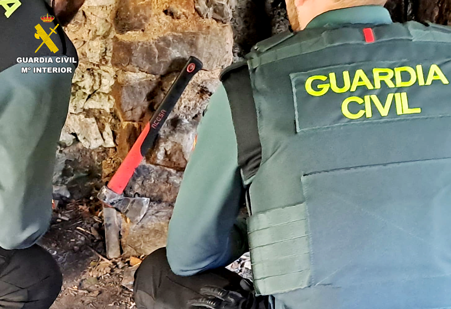 Tras recibir el aviso, patrullas de la Guardia Civil se desplazaron hasta la zona y abrieron una investigación para esclarecer lo ocurrido. En el curso de las pesquisas, los agentes obtuvieron distintos datos sobre las características del presunto autor, lo que permitió localizar poco después a un varón en una zona cercana que podía coincidir con la persona buscada y que además portaba un hacha. En ese momento se procedió a su detención y a la intervención del arma blanca.