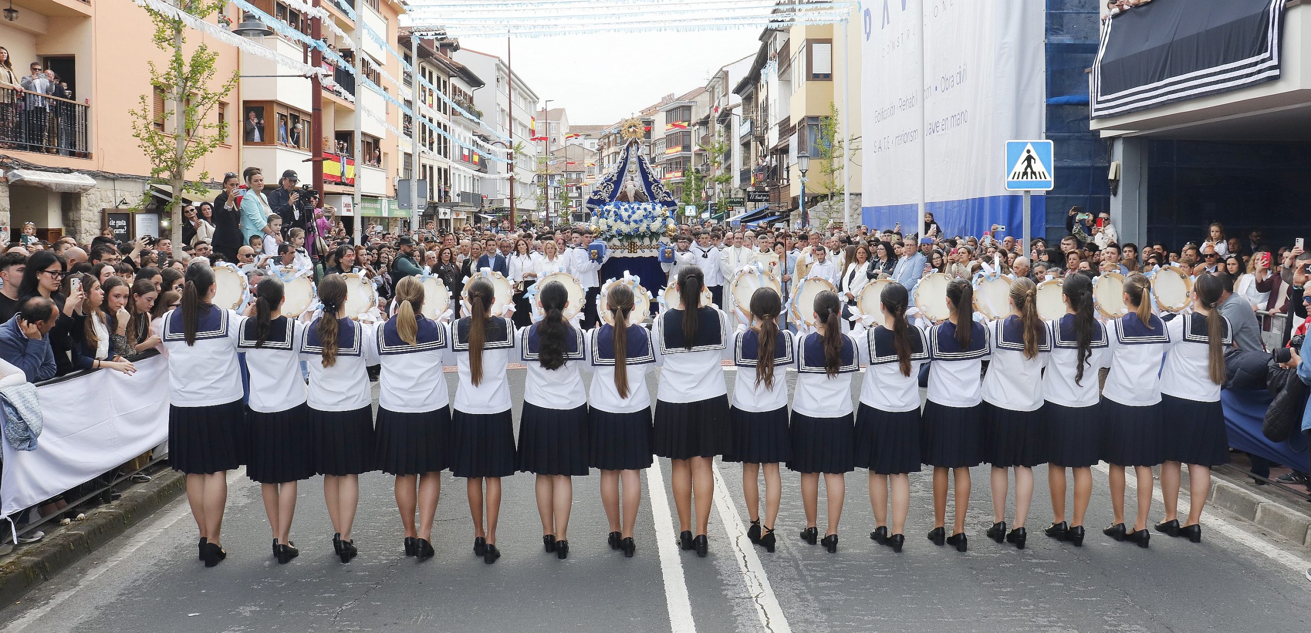 Ya por la tarde tuvo lugar uno de los momentos más emblemáticos de la celebración con la procesión terrestre, en la que la imagen de la Virgen fue trasladada desde la iglesia de Santa María de los Ángeles hasta el muelle, acompañada por la tradicional actuación de las Picayas en la Avenida de los Soportales.